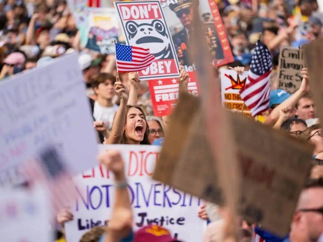 今天有数百万美国人参加了第二次“不要国王”(No Kings)运动的游行活动,这可能成为特朗普第二任政府上任以来规模最大的抗议浪潮。上次“不要国王”游行于6月举行,当时恰逢美国陆军建军250周年庆典与特朗普79岁生日,吸引了约500万人。而周六的系列活动在全美50个州、约2600个地点展开。 本次示威面临至少三股重大力量的冲击,使其性质与以往根本不同。首先,6月的示威避开了首都华盛顿,而这次“不要国王”游行在联邦政府停摆期间于周六正午左右抵达了华盛顿。其次,国民警卫队当前已在六个主要城市部署,局势高度紧张。不过,示威组织者强调,这次游行刻意营造一种爱国氛围。在活动前夕,从众议长迈克·约翰逊到众议院共和党会议主席丽萨·麦克莱恩、众议院多数党党鞭汤姆·埃默等多位共和党人,都抨击这场计划中的活动“不爱国”。 约翰逊称之为“仇恨美国”集会,并称“敢打赌”参加示威游行的都是“哈马斯支持者、安提法分子(美国高度去中心化的左派反法西斯主义、反种族主义政治运动,被特朗普宣布为‘恐怖组织’)、彻头彻尾的马克思主义者,那些不愿为共和国根本真理挺身而出的人”。 民主党人则试图重新定义该抗议运动,将其塑造成一种根本上爱国、具有美国精神的行动。为了宣传这项运动,密歇根州参议员伊莉莎·斯洛特金协助组织她那些曾在国家安全岗位服役的同僚拍摄了一段社交媒体视频,包括亚利桑那州参议员马克·凯利(原海军上校飞行员)和鲁本·加耶戈(原海军陆战队员)、纽约州众议员帕特·瑞安(原陆军上尉)。他们在视频中呼吁服过役的人员“为我们共同热爱的国家挺身而出”,以“深切的爱国情怀”参加一场“不要国王”活动。他们讲话时,身后都悬挂着美国国旗。对斯洛特金及其盟友而言,这一努力是民主党在去年11月选举后的更大政治计划的一部分。正如她今年早些时候在谈及自己的“作战计划”时所说的那样,他们要“TMD夺回大旗”。 图片来源于网络
