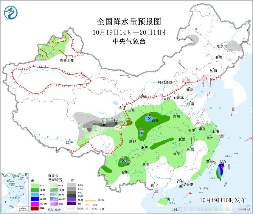 今天下午到明天中午,降水范围可能还会扩大。随着低空偏东风回流和高空槽东移,甘肃南部,四川东北部,陕西中南部,河南,山西南部降水会增多。此外台风风神和冷空气共同作用加上地形抬升,台湾东北部可能出现暴雨-大暴雨。