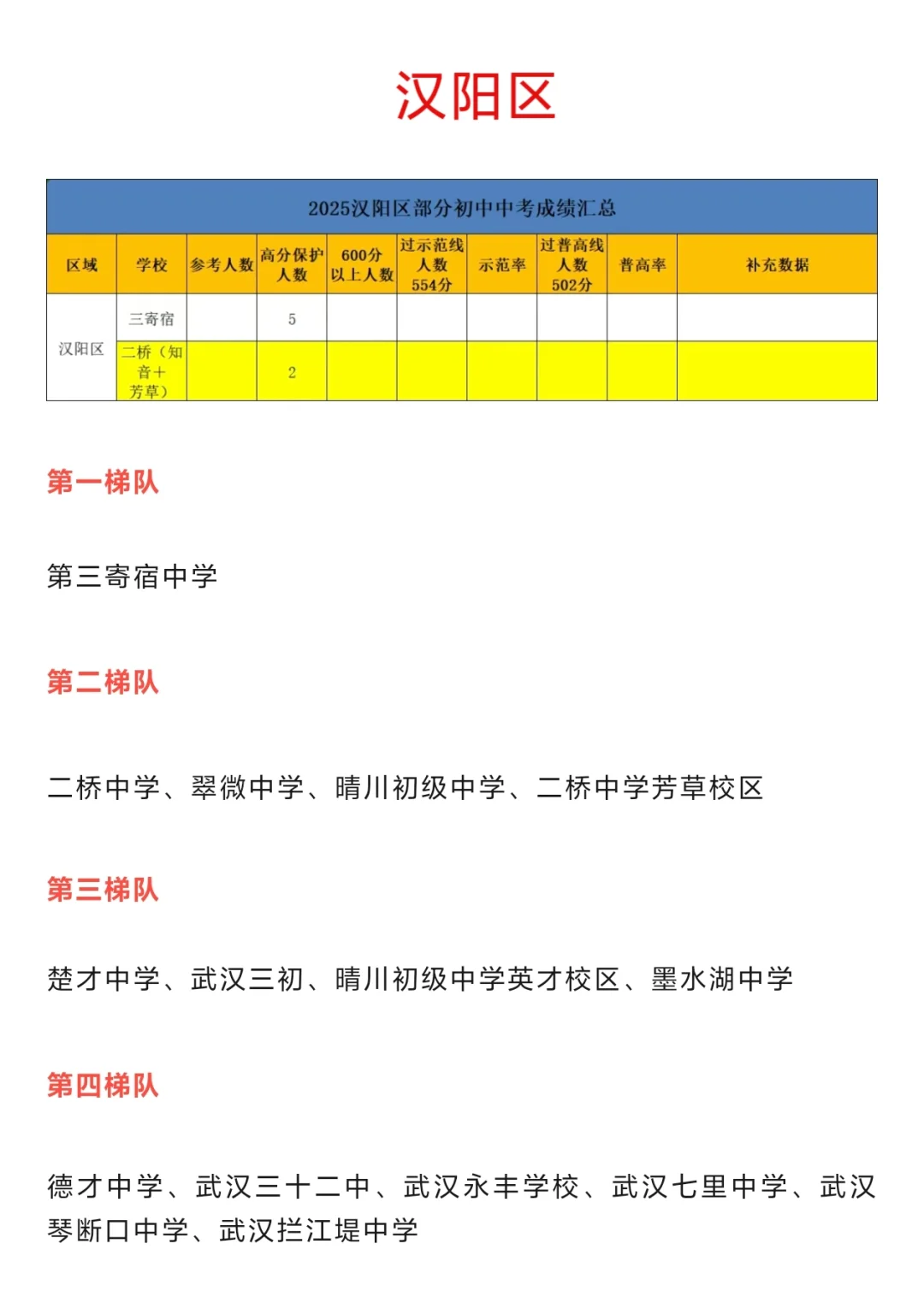 洪山实验中学,双湖中学,卓刀泉张家湾分校,洪山中学第四梯队