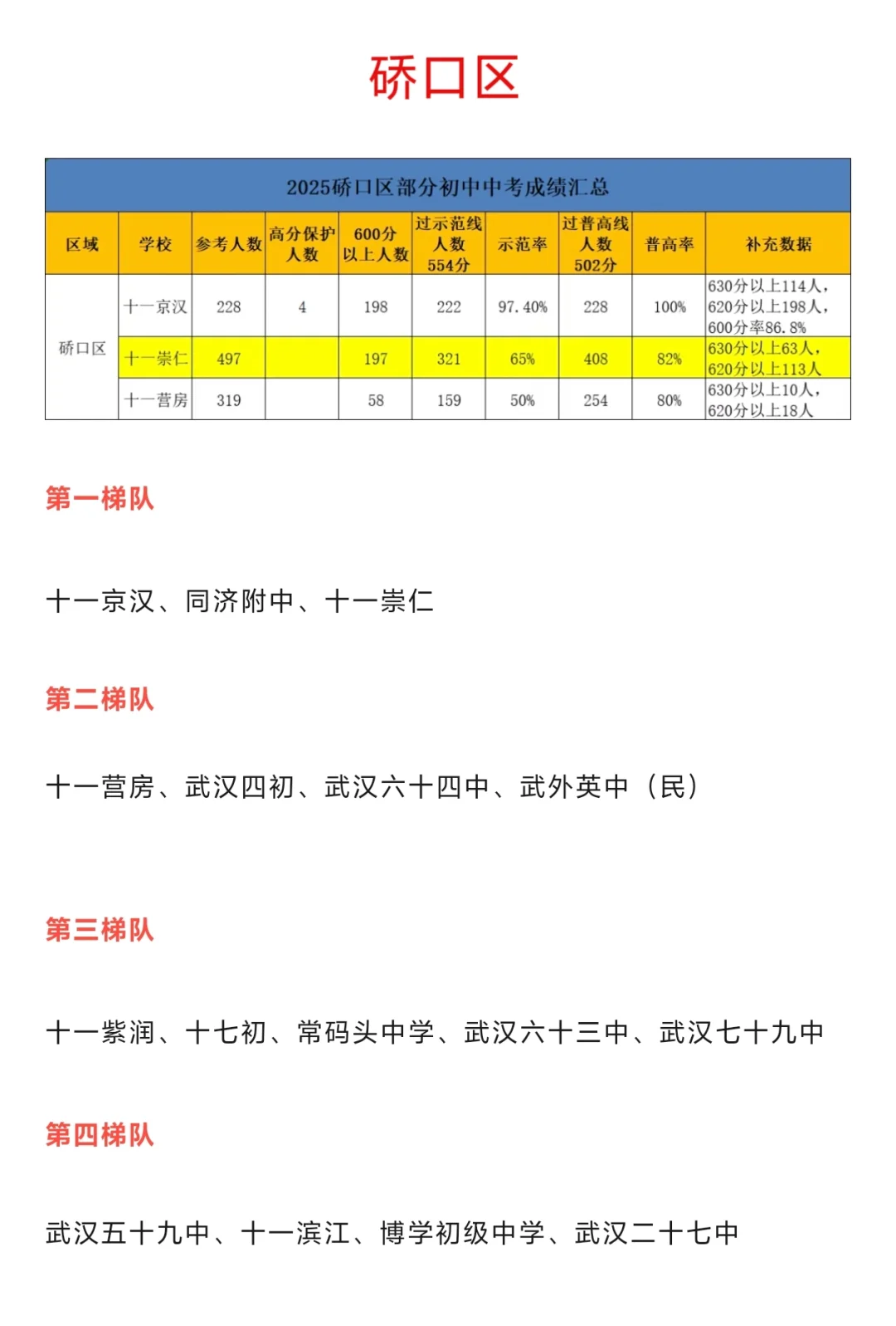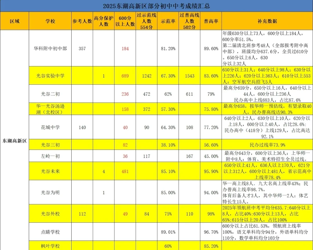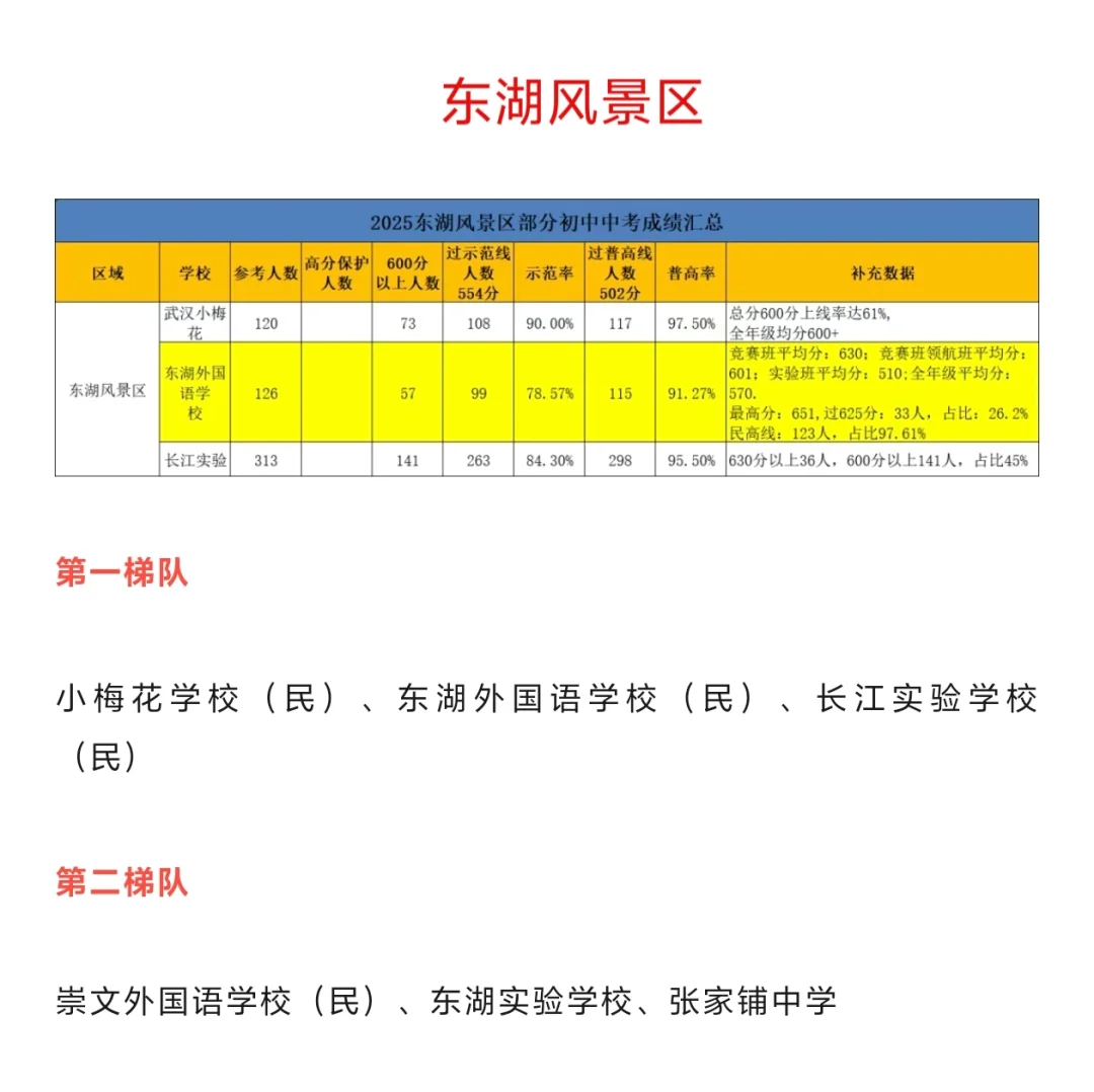 光谷外国语学校(民)、点睛学校(民)、格鲁伯实验学校(民)、武汉枫叶学校(民)、光谷汤逊湖学校、花城中学第四梯队