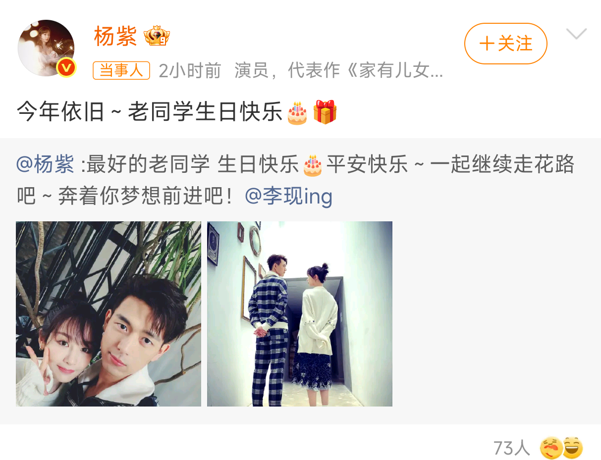 杨紫连续七年发博为李现庆生 爆火不拆伙,顶峰不独行!难得[鲜花]