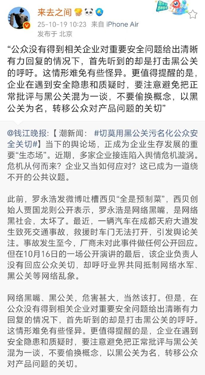 切莫用黑公关污名化公众安全关切简单发表一下自己的想法,作为自媒体我个人是一直秉持着客观公正中肯的视角适度且合理的发表自己的看法,相信大多数同行也是。而作为品牌更是要合规适度的宣传自己的产品,不要偏离事实的过度宣传