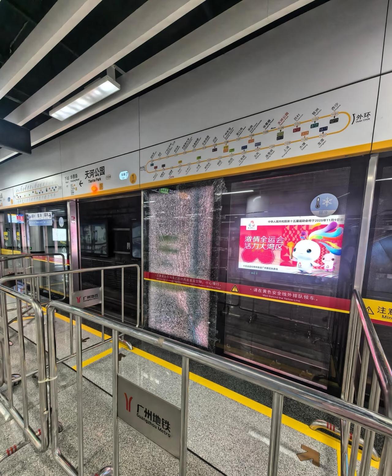 广州地铁11号线又炸门!? 广州地铁天河公园站11号线外环1站台炸门,现场有工