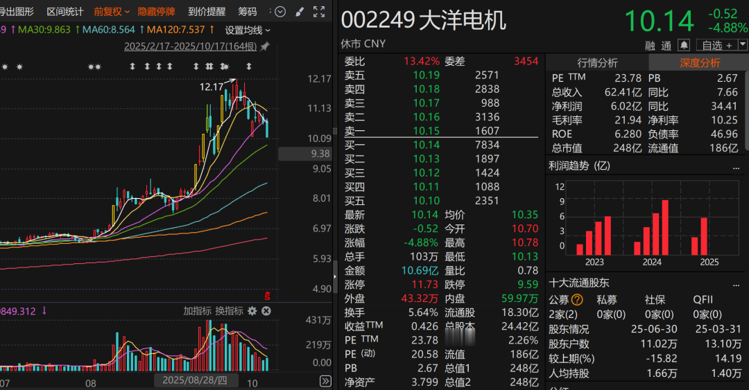 近年来,大洋电机保持着稳健的业绩增长。2025年上半年,公司实现营收62.41亿元,同比增长7.66%;实现归母净利润6.02亿元,同比增长34.41%。
