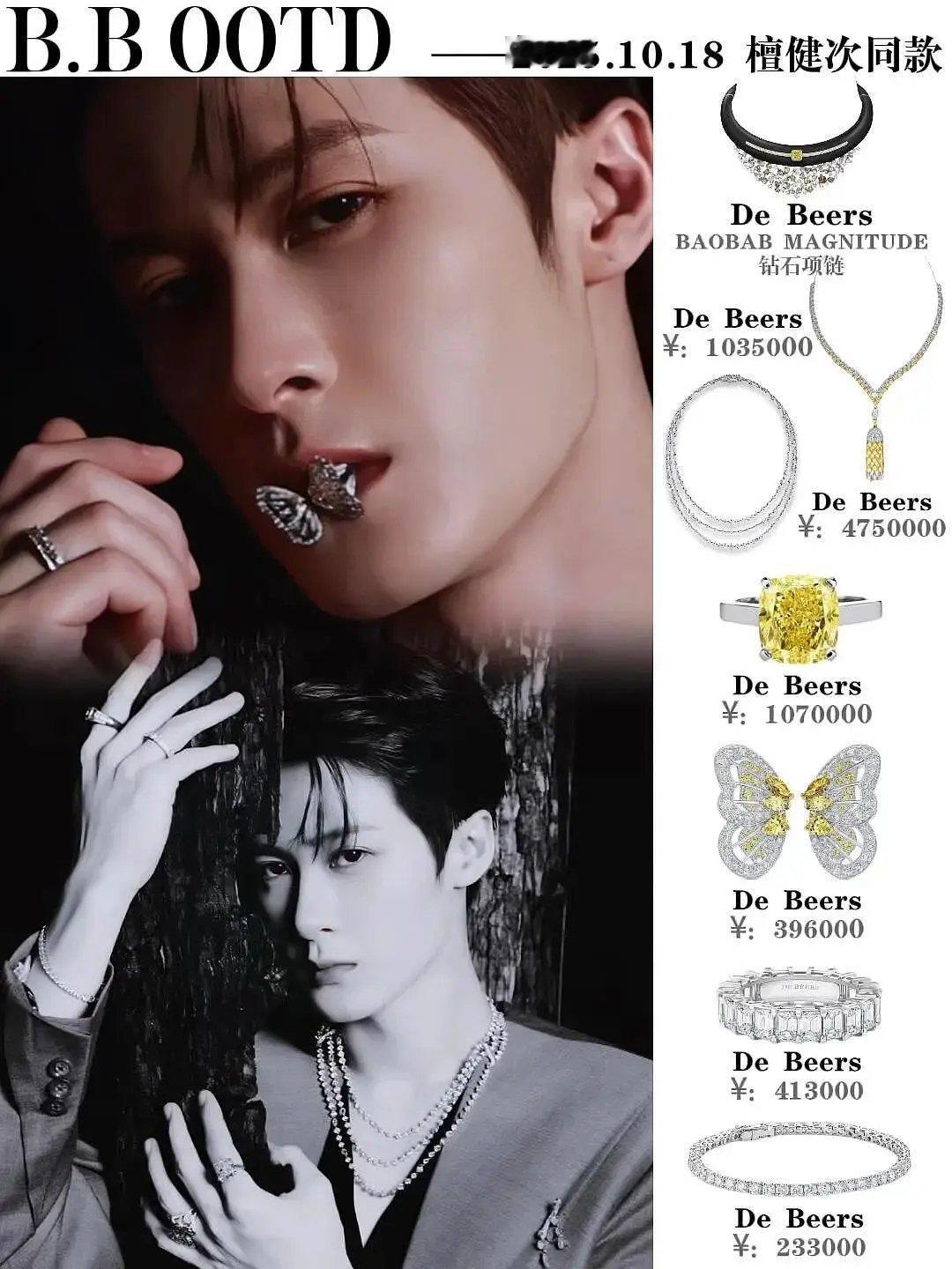 戴比尔斯代言人檀健次快被品牌高定珠宝 挂成圣诞树了