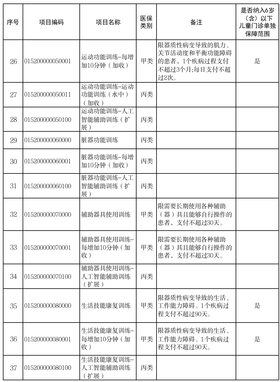 为持续做好包括残疾人在内的广大参保人员康复医疗保障工作,确保政策平稳衔接,现就《河北省医疗保障局关于规范康复类医疗服务价格项目的通知》(冀医保函〔2025〕78号)中新增康复项目医保支付政策明确如下。
