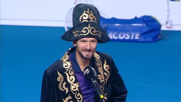 问梅总没接受六王赛的邀请去阿拉木图后悔吗?可他在阿拉木图拿到了冠军啊🏆!虽说是一个250赛事冠军,但这是梅总自2023年罗马站冠军,两年多来,882天后的第一个冠军,意义重大。可喜可贺! 观众席上梅总的家人欣慰地笑着。 颁奖礼时梅总穿上了哈萨克斯坦的民族服装,本就身材颀长的人,高帽更让他变成了巨人[笑哭]。 同一天的冠军还有WTA500宁波站的莱巴金娜。宁波的口碑不错,无论是赛场硬件还是组织对球员进行的文化推广。 莱巴金娜去游览了宁波走马塘村的中国第一进士村,并留下好看的汉服照。最最最关键的是,带走一个冠军。真是不虚此行。 再次恭喜梅总和莱巴。明年争取重新打卡来卫冕[呲牙]。