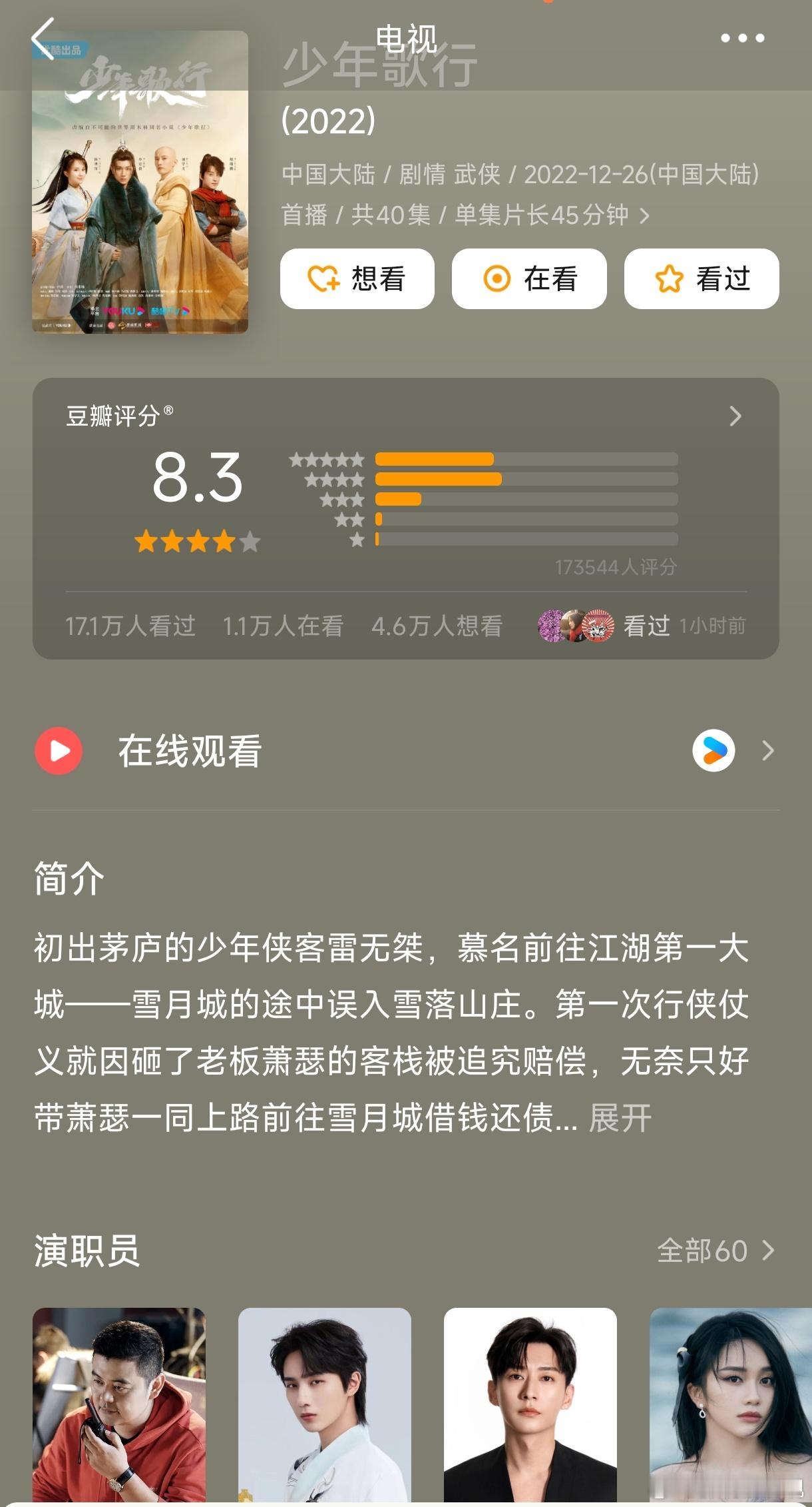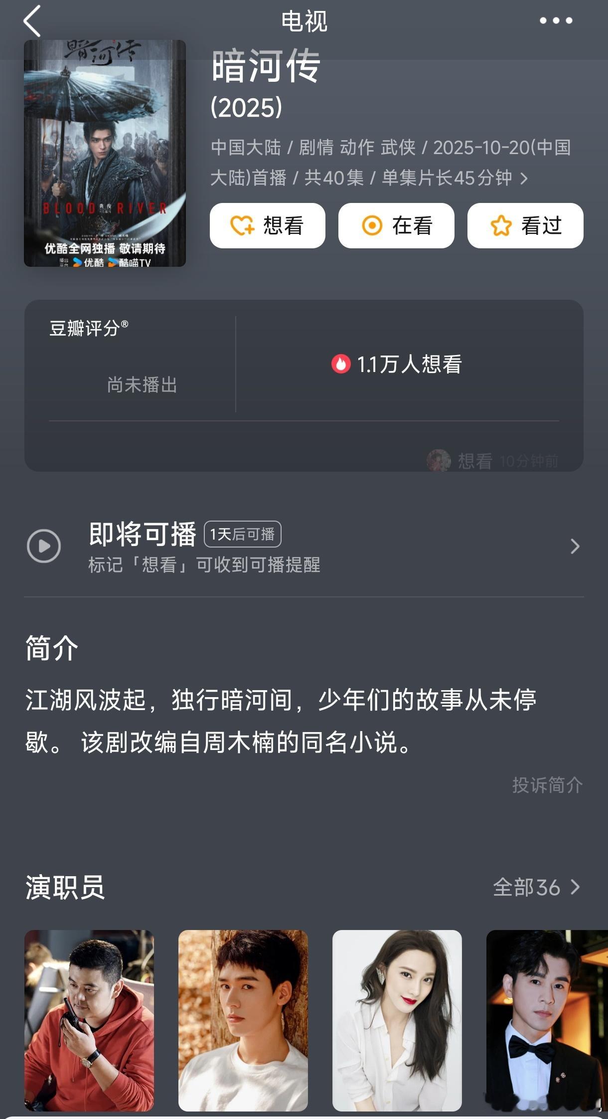 暗河传优酷热度破6000第一部少年歌行8.3分,看了暗河转的预告,口碑也不会差,一周之内热度应该可以破万!
