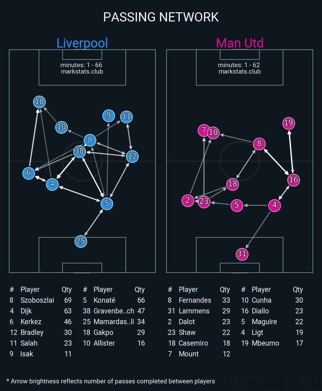 控球率 63.3%-36.7% cr:曼联球迷频道