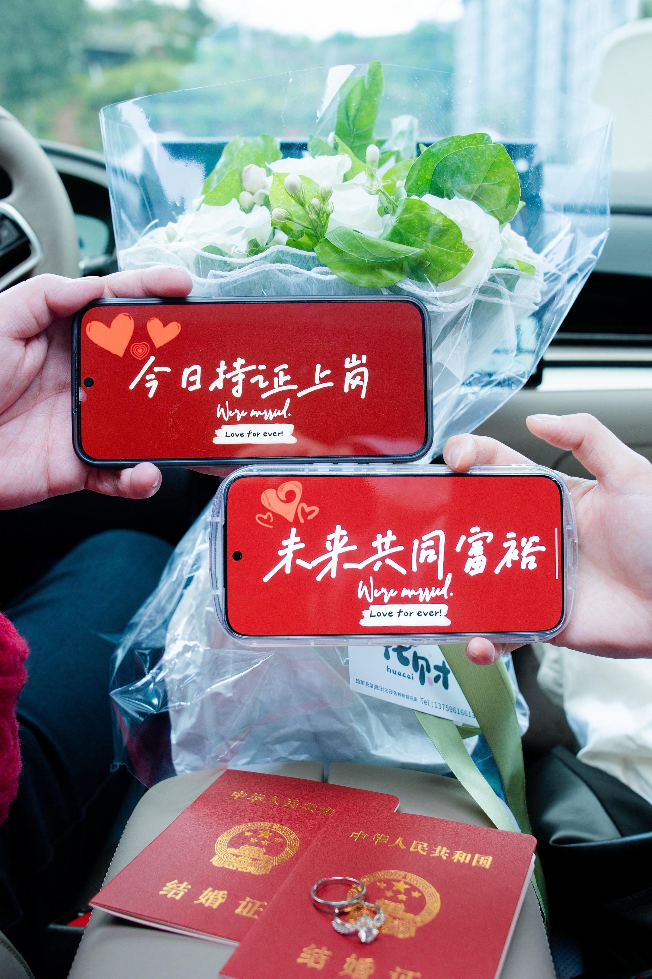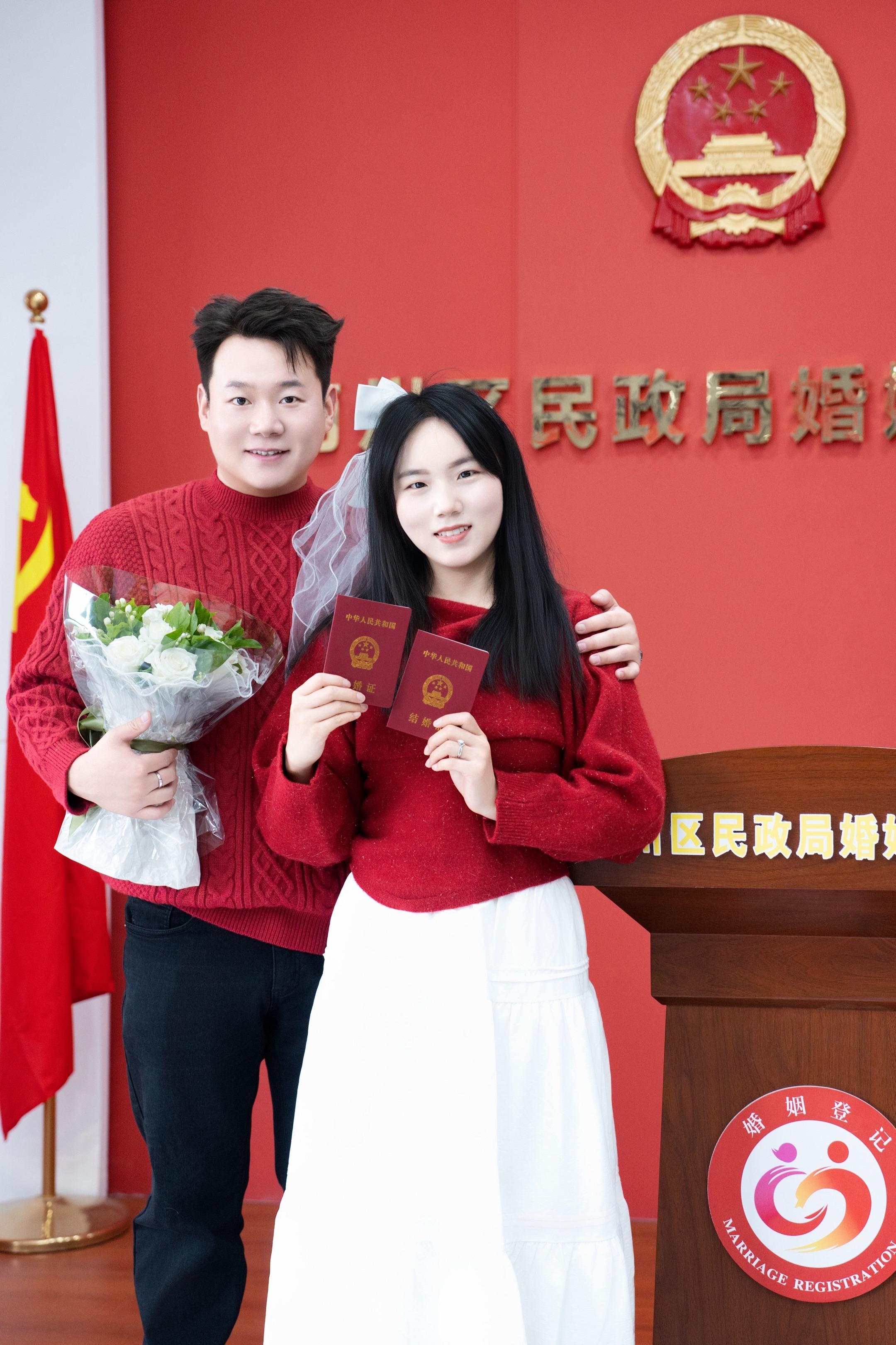 用镜头记录他们送“我”到“我们”的这一天。今天又为一对新人记录了领证的幸福时刻,记录下这份“今日持证上岗,未来共同富裕”的喜悦。