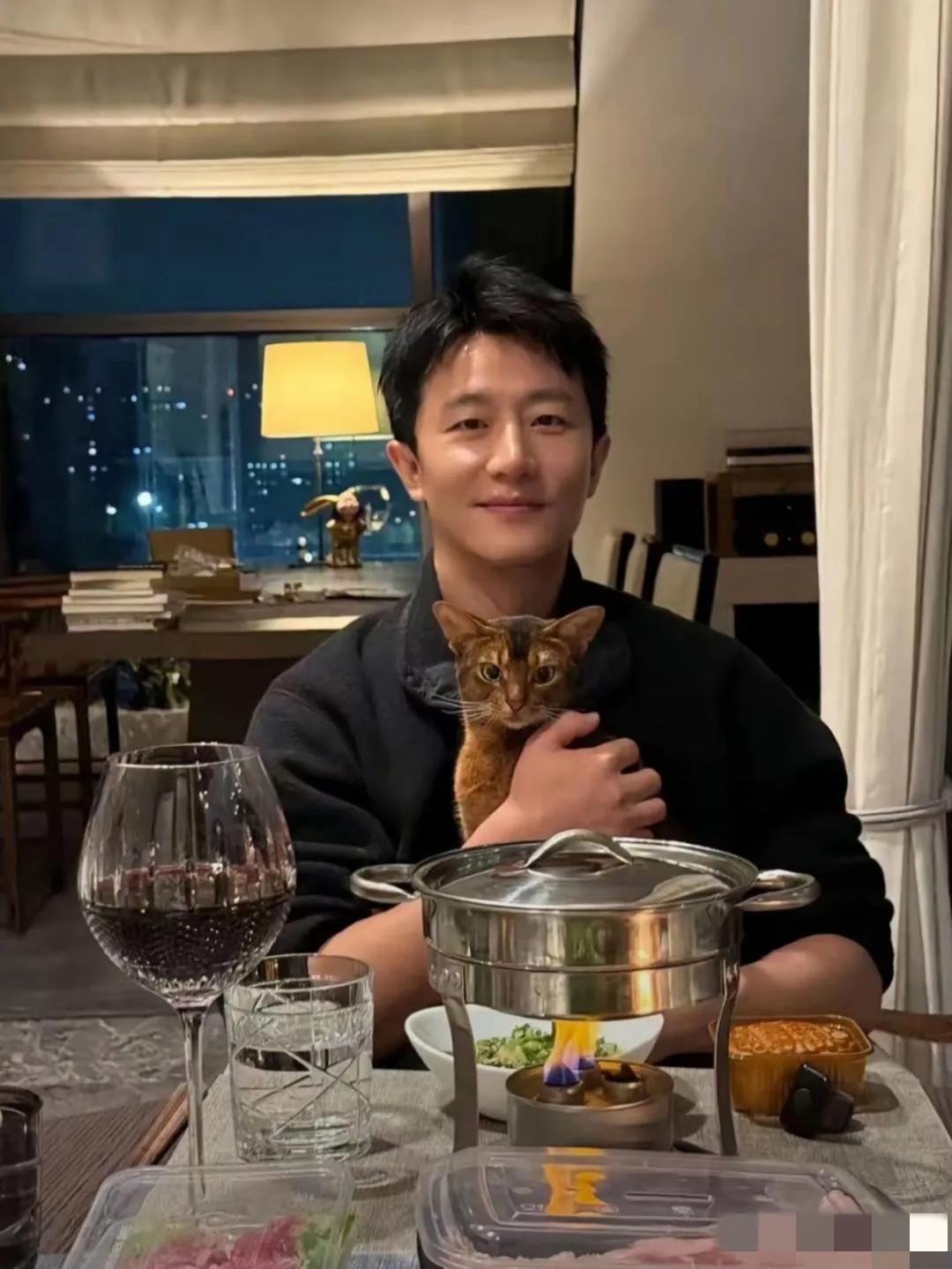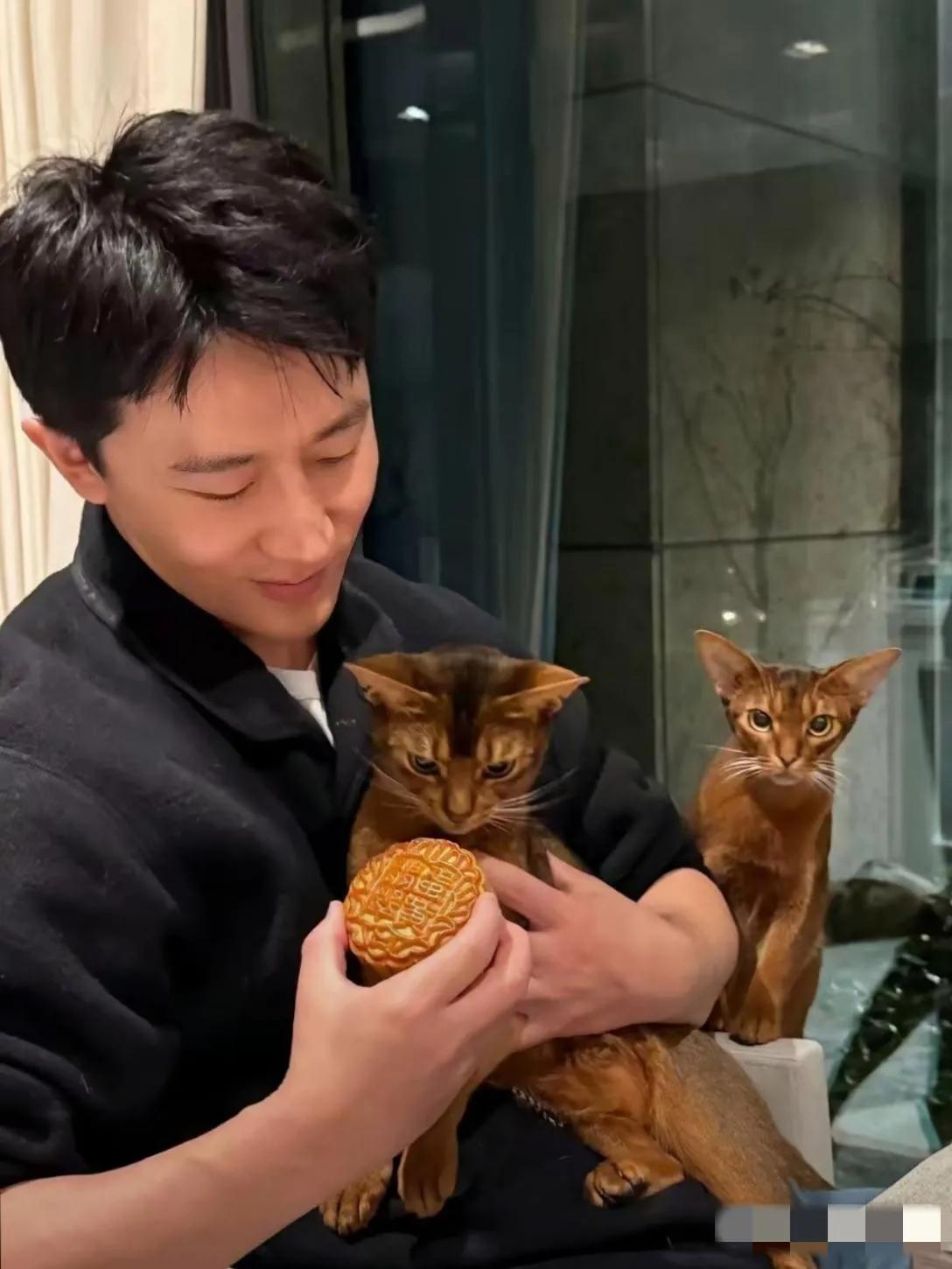黄轩与爱猫合照:画面中的黄轩气色盈和,疏眉朗目,鼻似秀峰,年轻帅气;两只猫咪看上去乖巧可爱,模样俊俏,总觉得喜欢小猫小狗的人充满了爱心,你觉得呢?