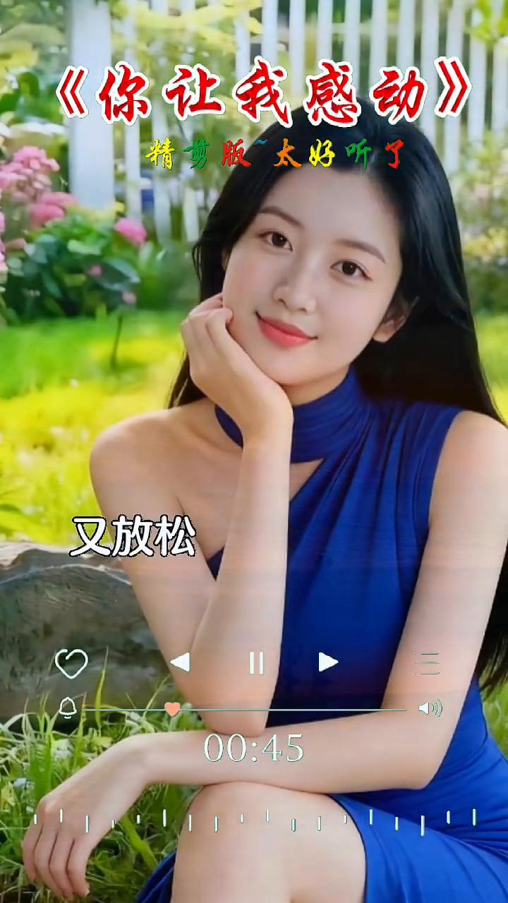 《你让我感动》精剪版太好听了。 你让我心动,你让我感动,你让我撒满,一路芬芳的影踪,温情在流动,热情来相拥,一份真的关怀,你不说我也懂,祝福你,每天每分钟,都有开心的笑容,平凡的生活,活得快乐又放松,祝福你,每天每分钟,坚强又从容,我就在你的掌声中,有那做不完的梦。