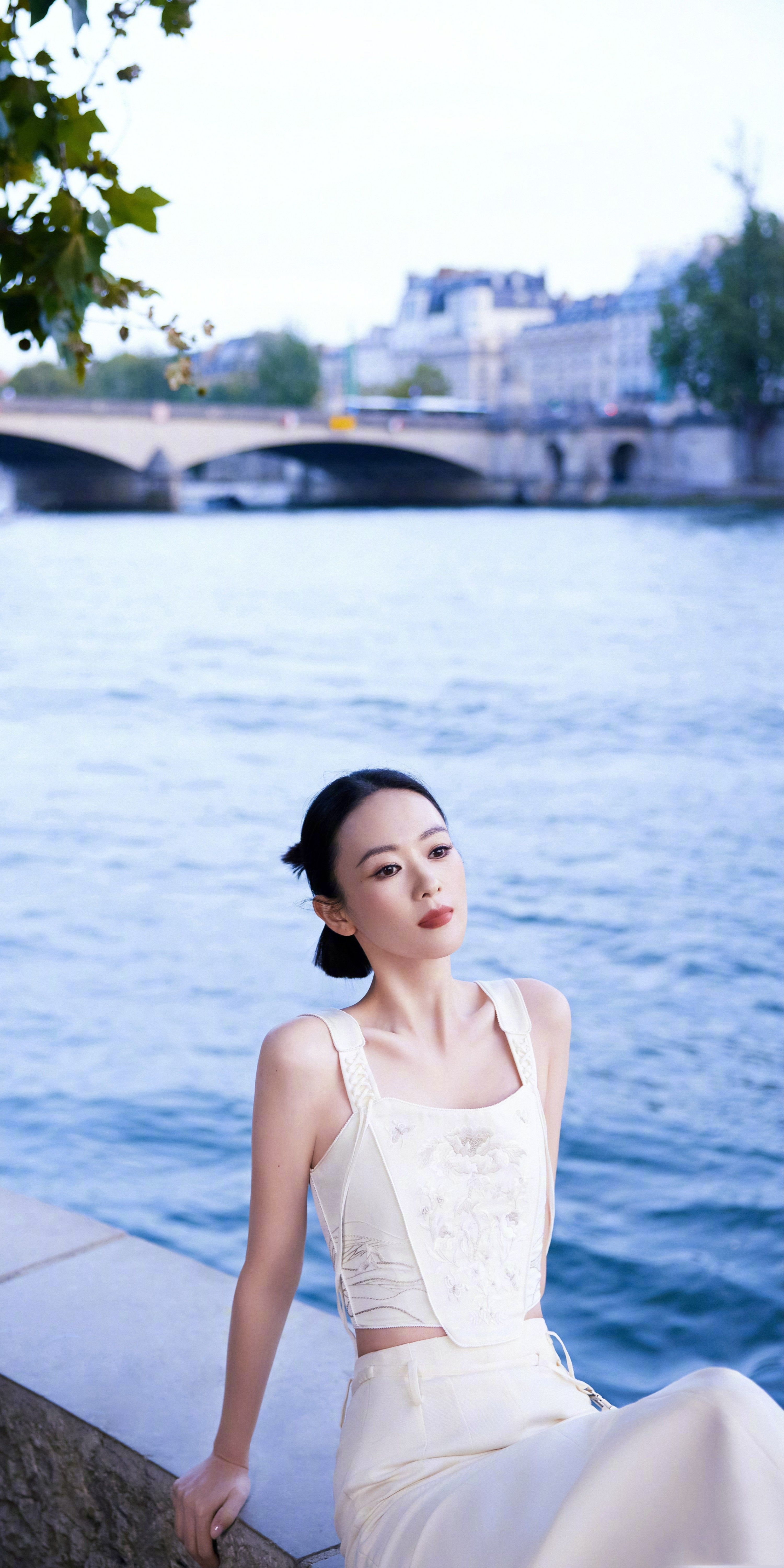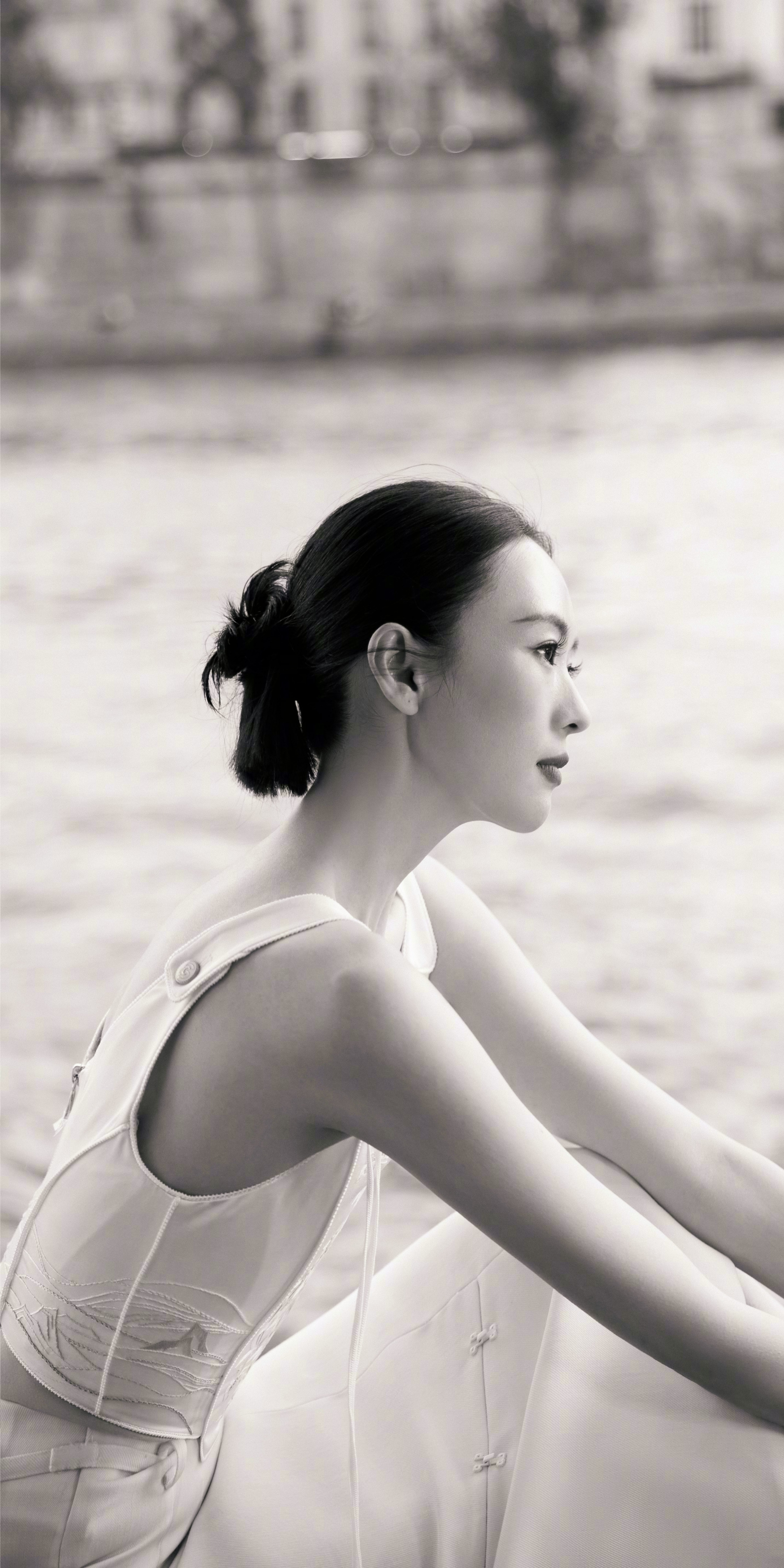 童瑶壁纸大赏:白裙曼妙,在塞纳河畔的温柔格调