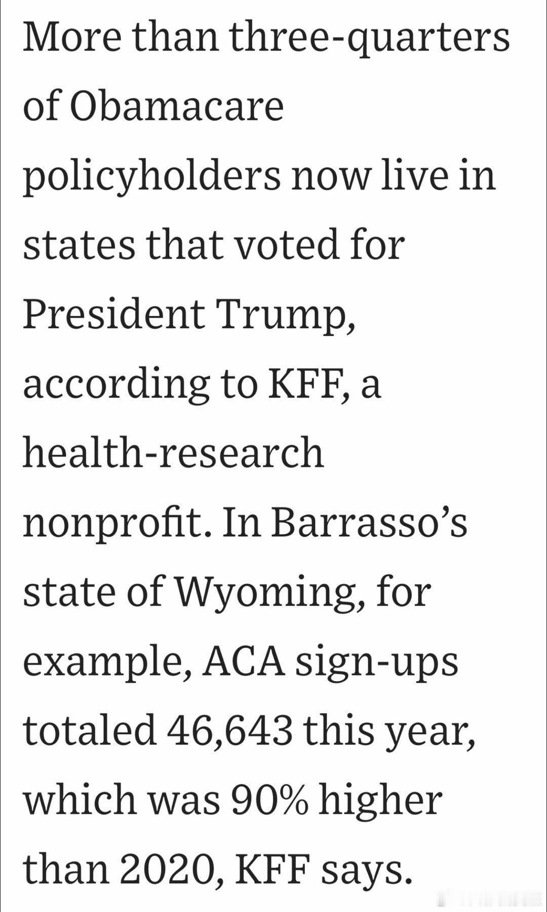 奥巴马医保的使用者,超过3/4住在选Trump的州(东西海岸大城市,高学历、高收入的,买私人险的多、享受补贴的少)