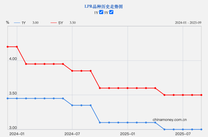2025年9月贷款市场报价利率(LPR)为:1年期LPR为3.0%,5年期以上LPR为3.5%。
