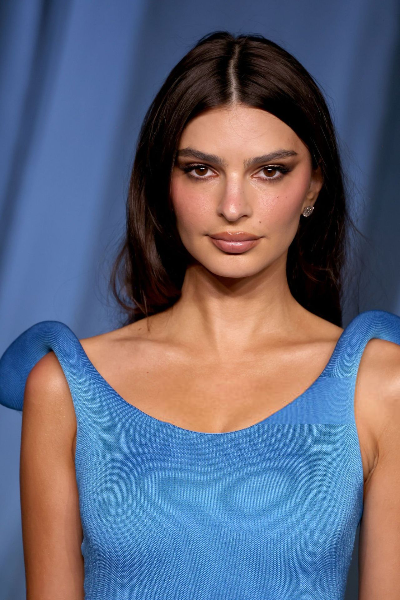 2025年10月18日,超模艾米丽·拉塔科夫斯基(Emily Ratajkowski)在洛杉矶举行的学院博物馆晚会上身穿Jean Paul Gaultier 2026 春季蓝色礼服,搭配 Aquazzura Olie Plateau 凉鞋。