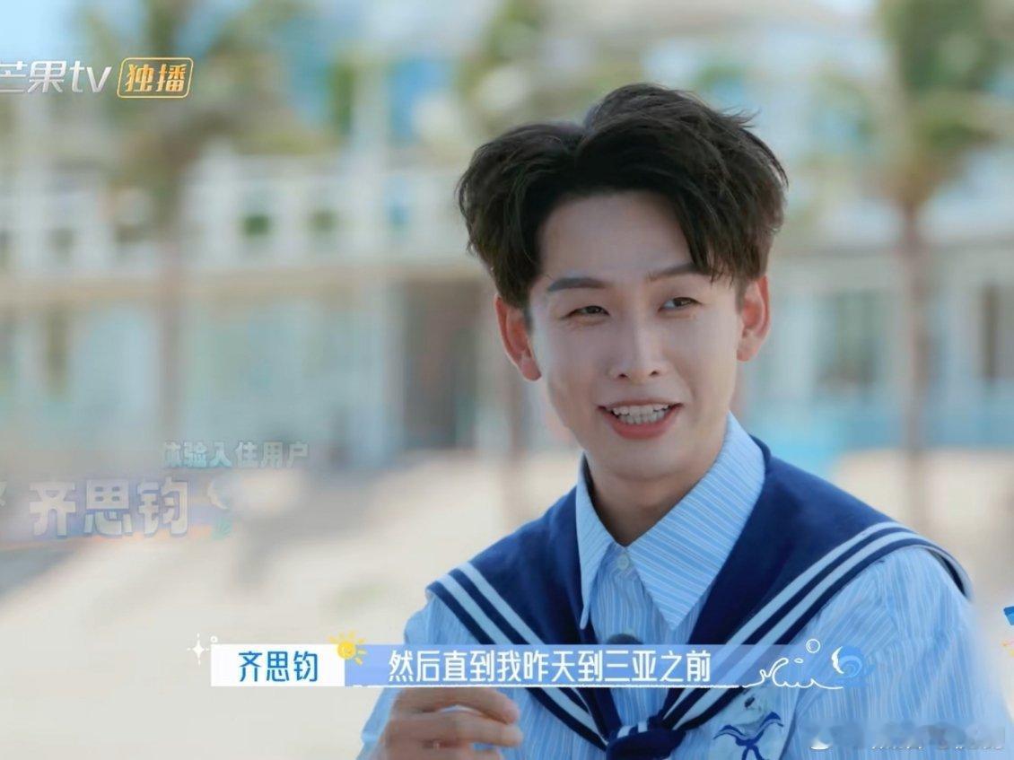 齐思钧以为打工实则放假齐思钧抱着工作的想法做足了准备,穿着海洋主题的浅蓝色上衣、
