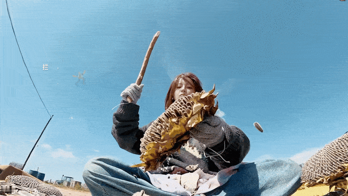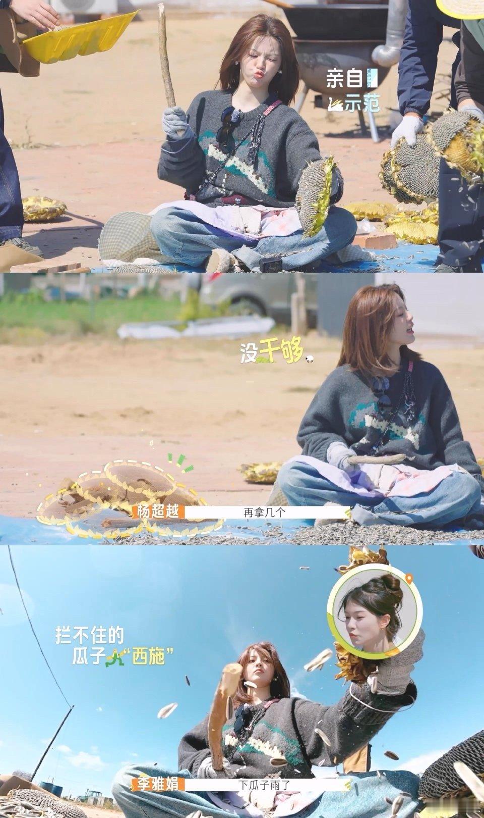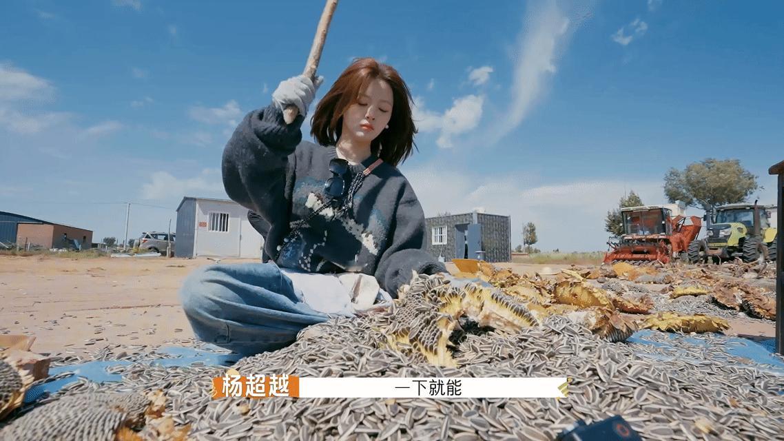 杨超越瓜子西施不是白叫的 《非来不可3》新期杨超越剥瓜子名场面!一手扶葵花一手敲棒槌,动作利落,瓜子堆成山,专注样子,“瓜子西施”没毛病!