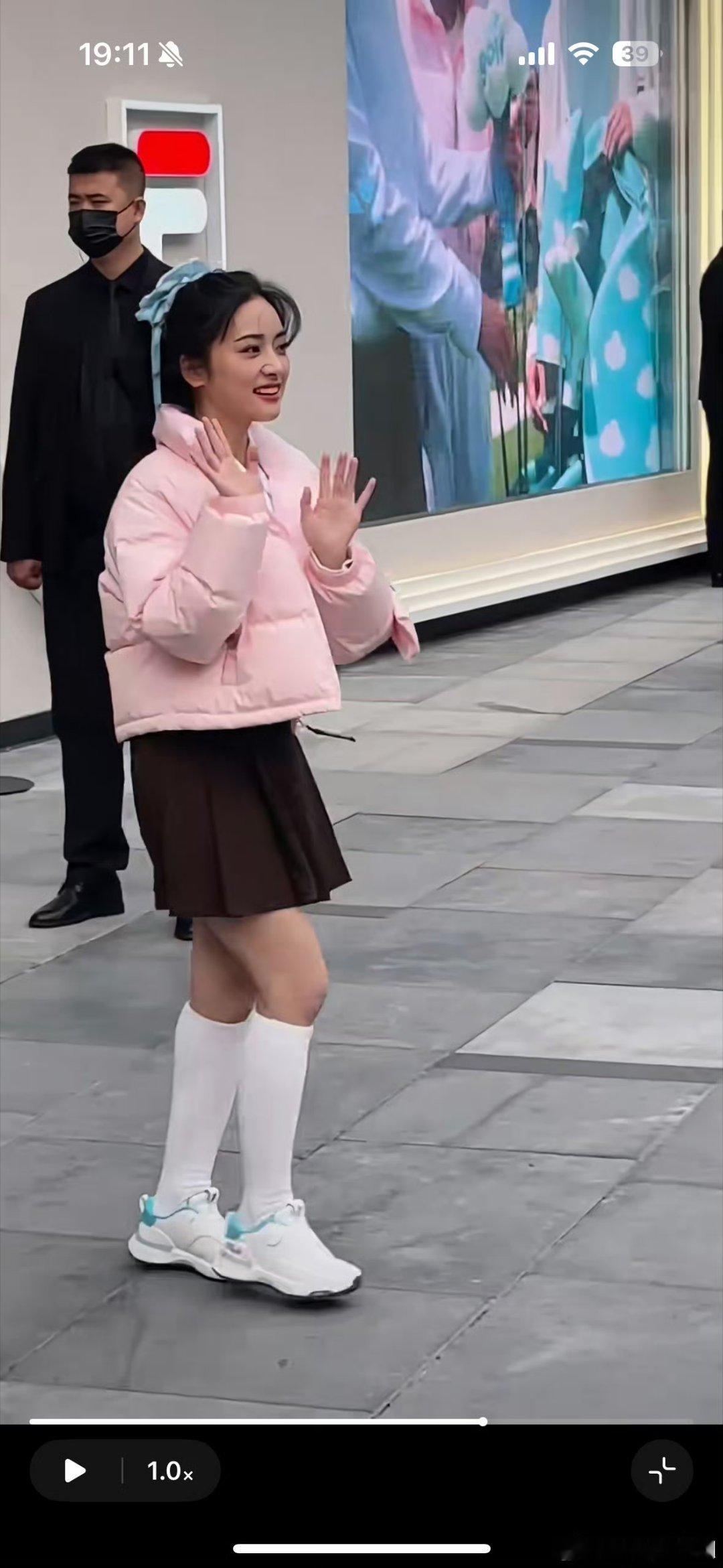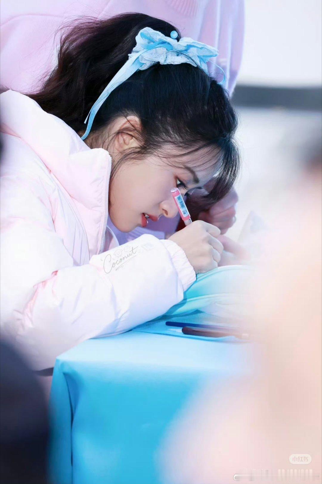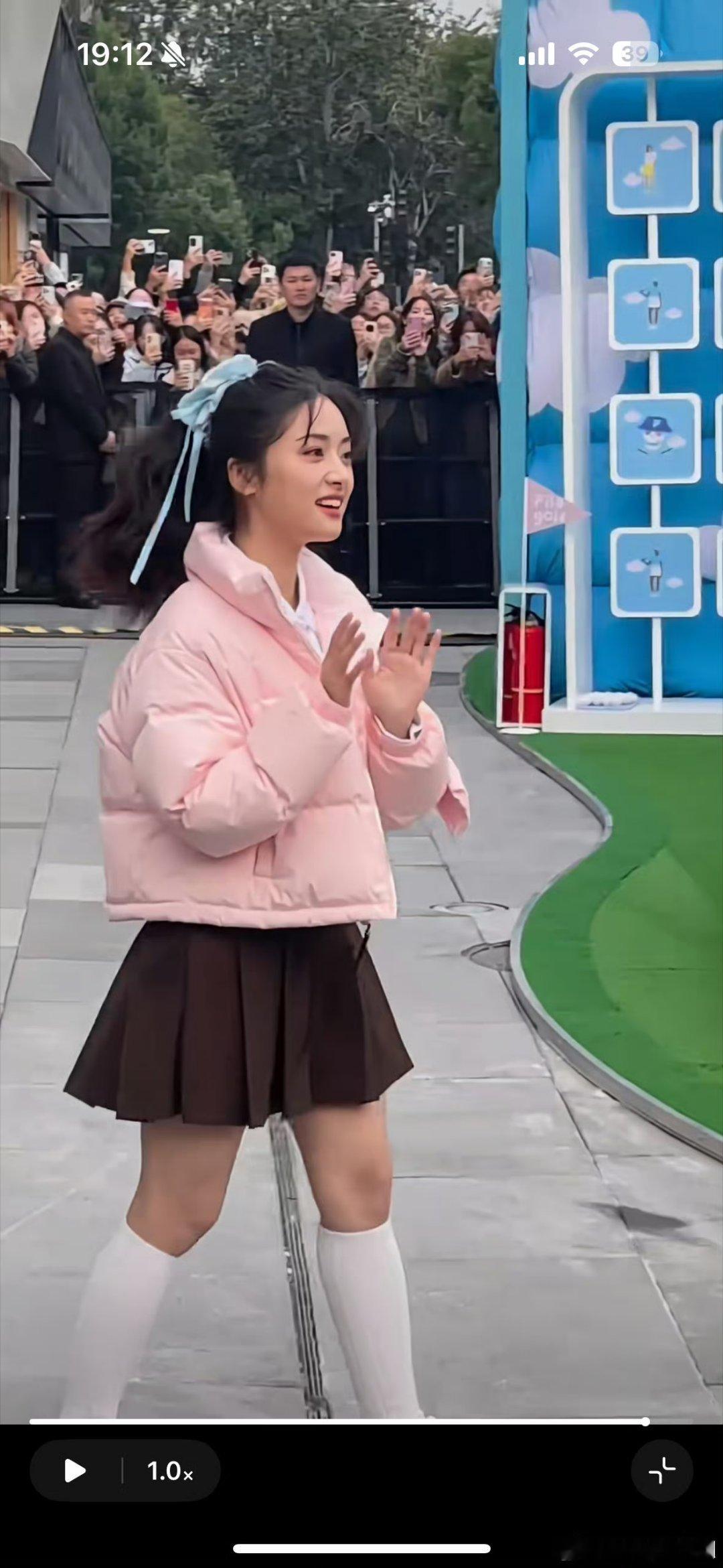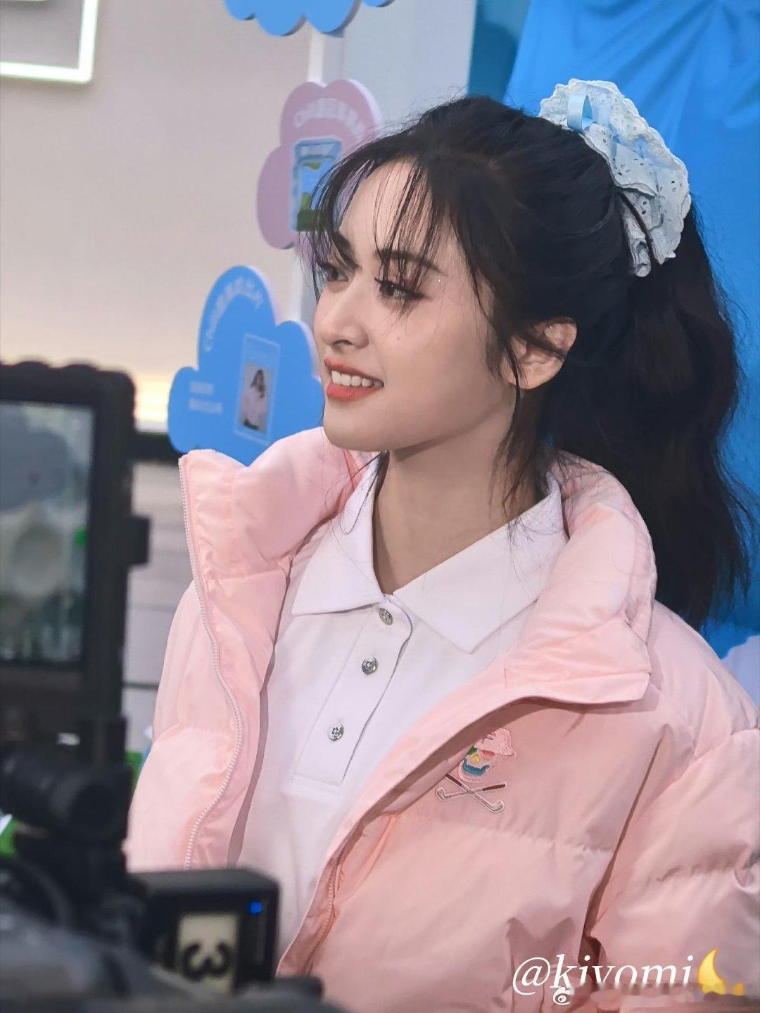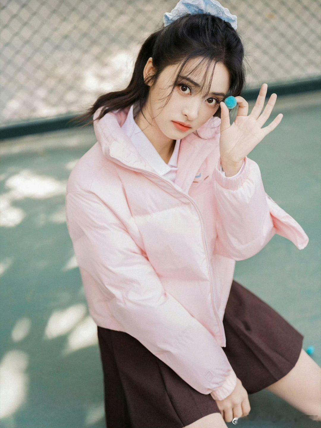 粉色羽绒服真的很甜美啊!搭配小裙子,校园感十足!