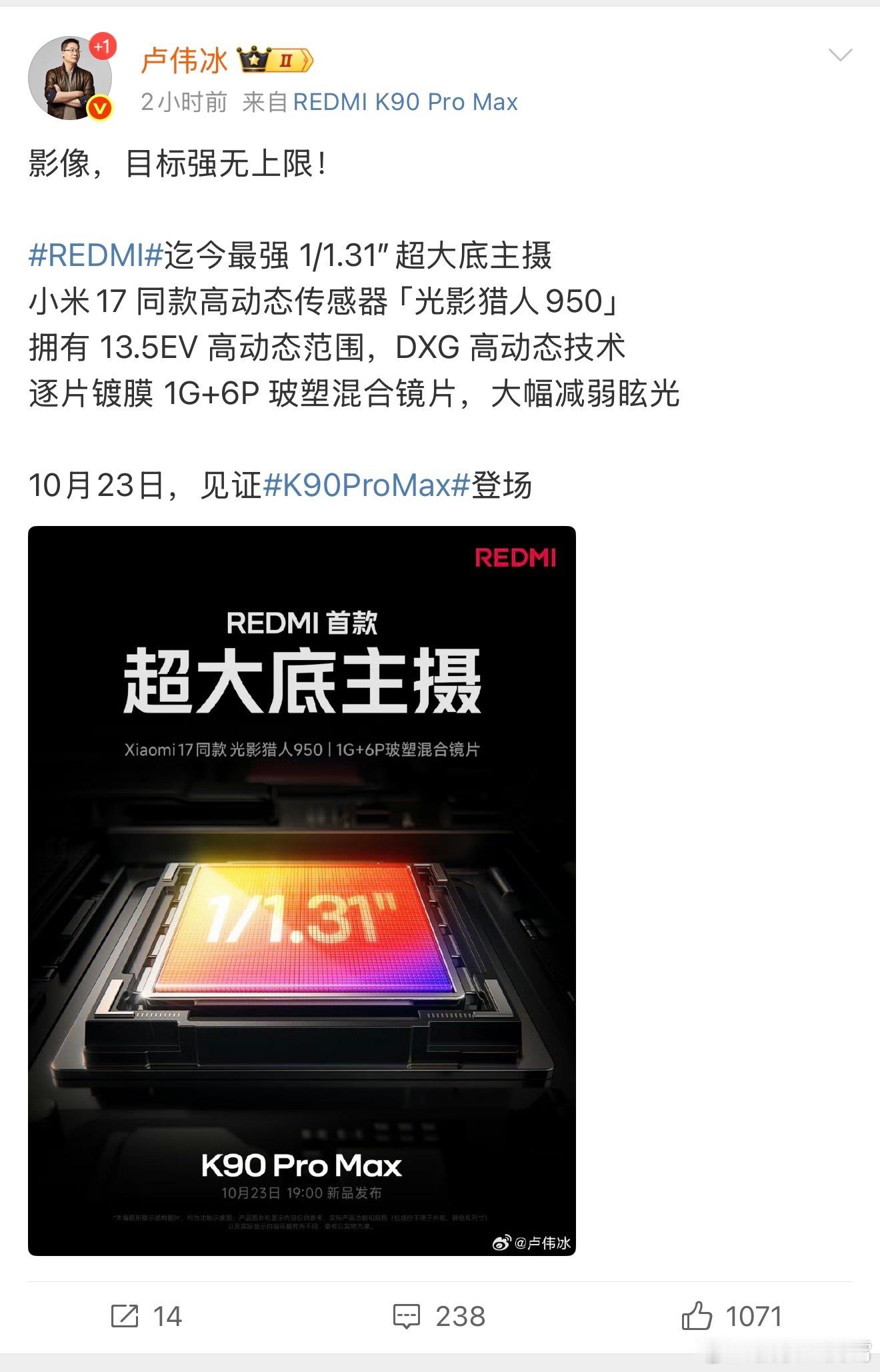 不错,这次REDMI K90 Pro Max在影像方面的堆料还挺下血本,主摄是小米17同款光影猎人950,1/1.31英寸的大底,同时还用上了REDMI首款5X潜望长焦,望远能力大幅提升,构起图来更方便,说实话有点追齐大哥的意思了,这波提升可以吧[awsl]