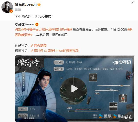 曾舜晞为龚俊苏暮雨打call曾舜晞说苏暮雨是暗河第一帅哥 曾舜晞为龚俊苏暮雨打call啦~一起来看暗河第一帅哥苏暮雨!