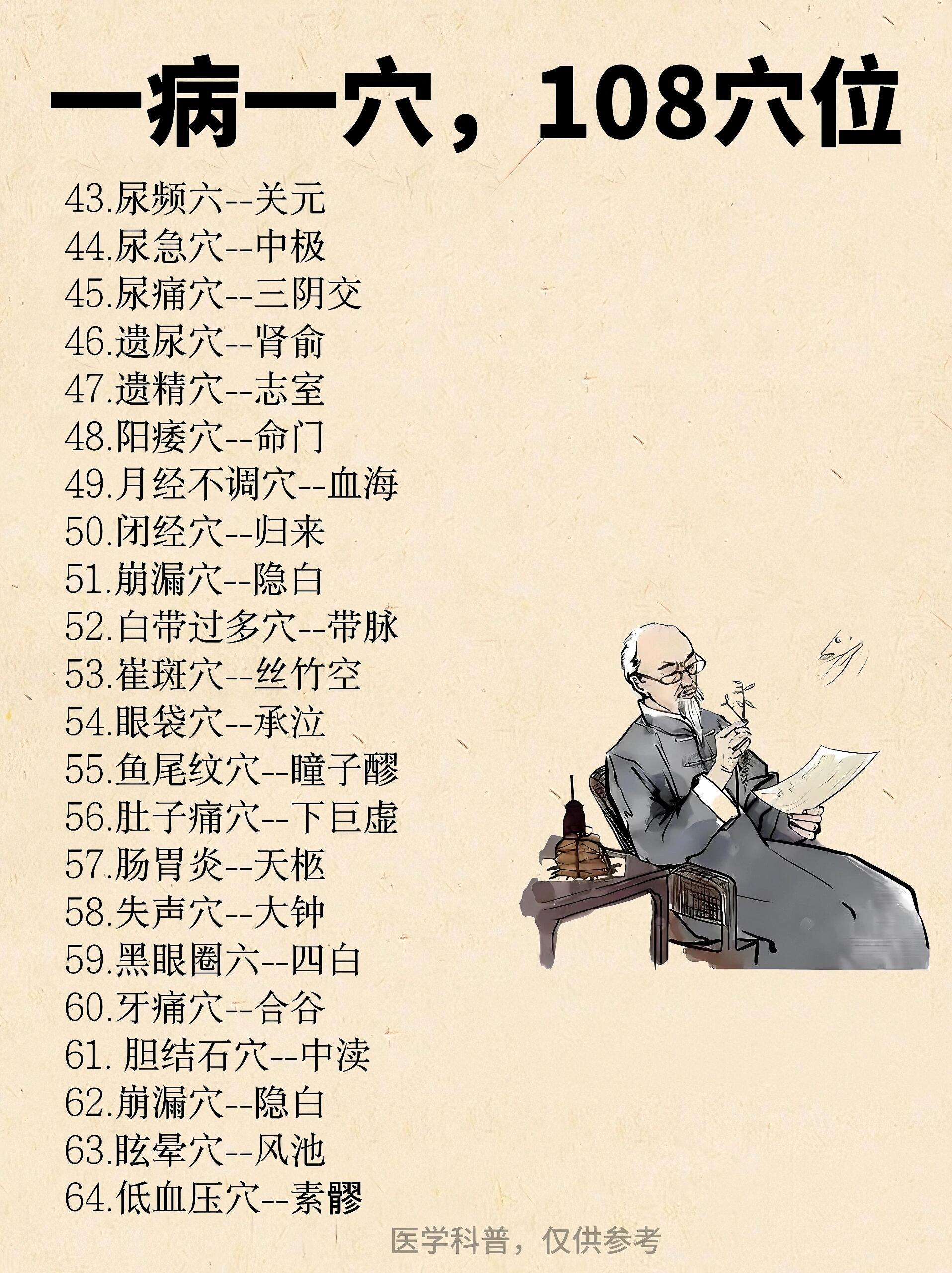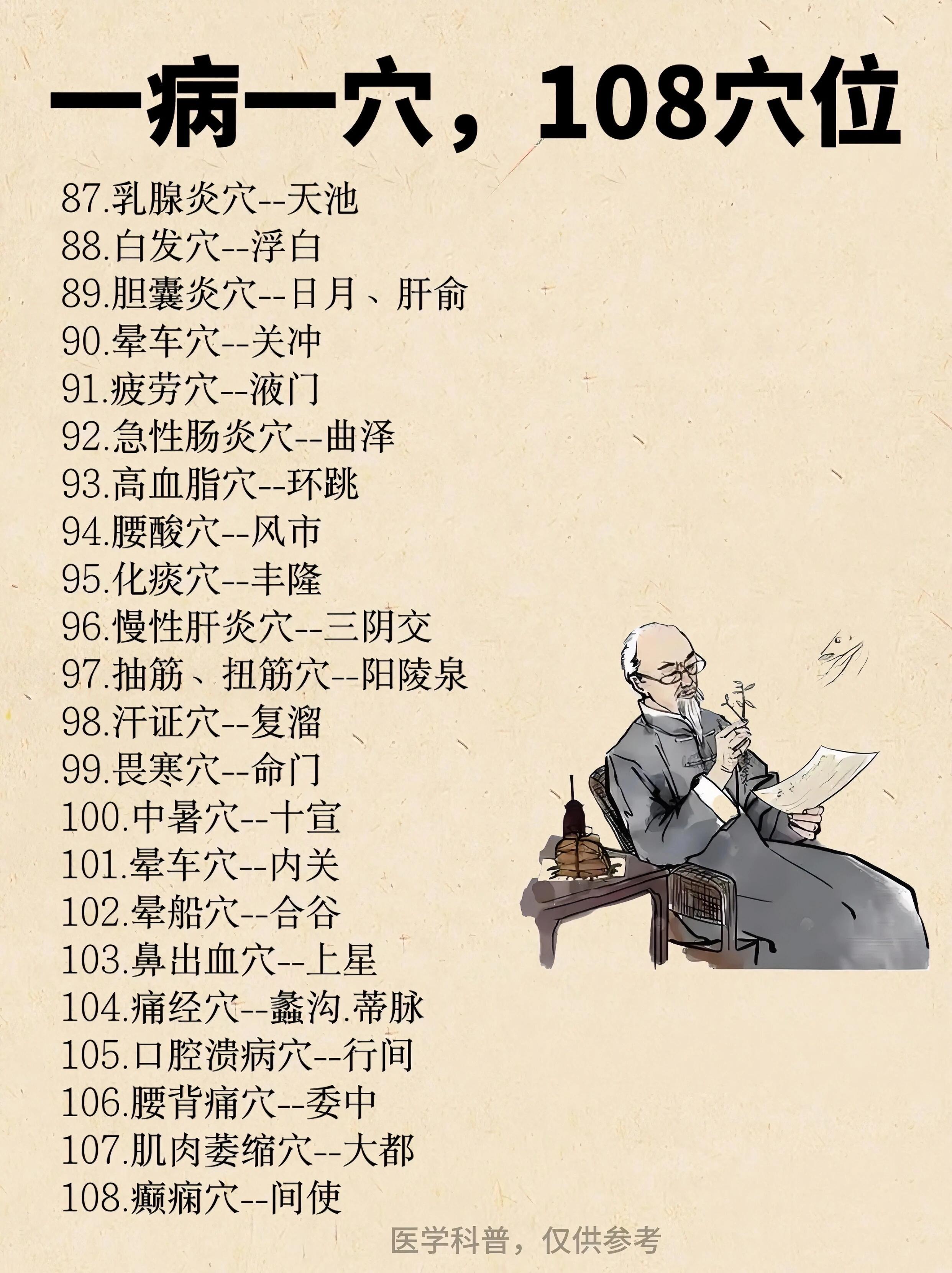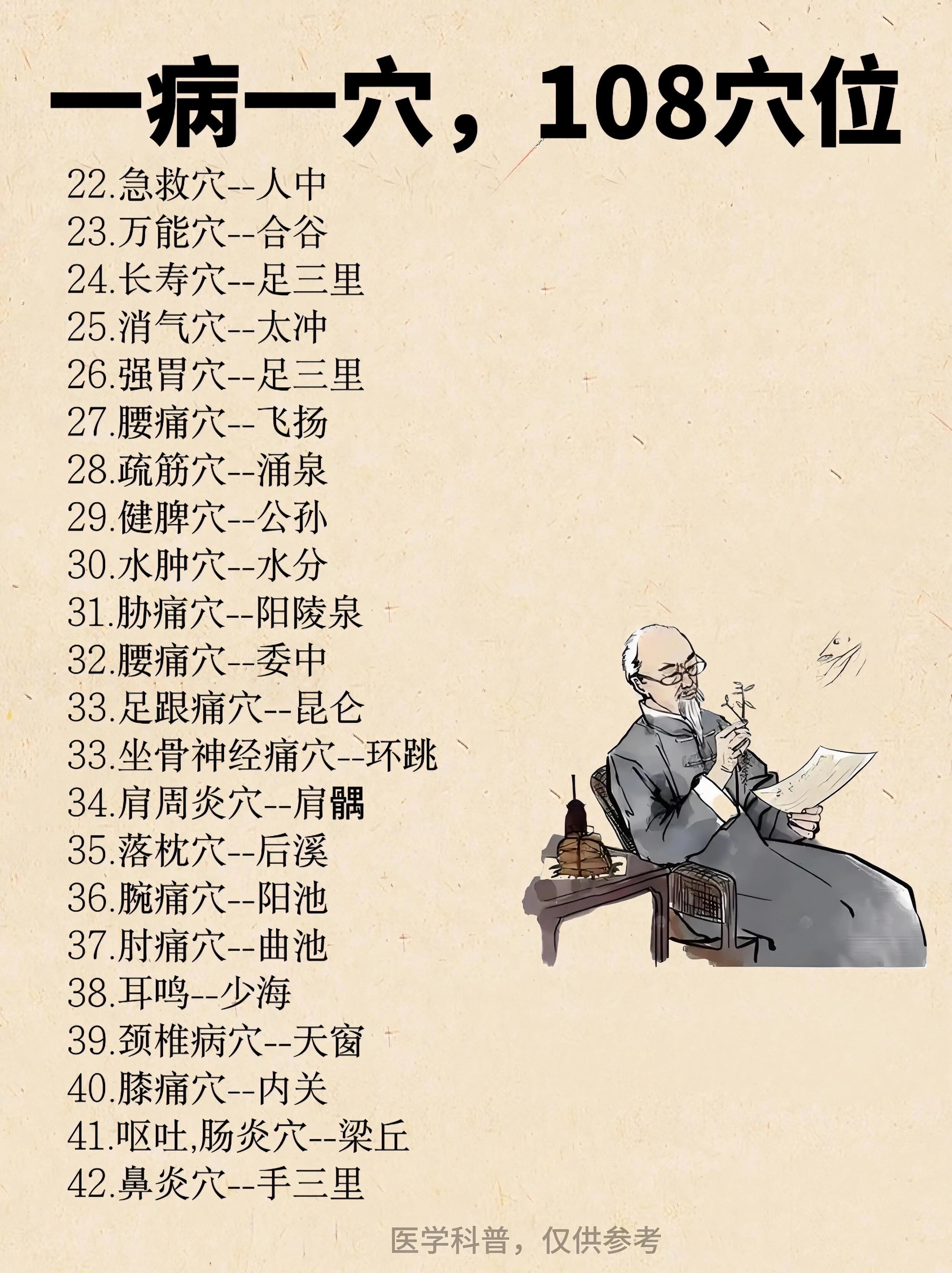 108穴位,一病一穴,养生人必知道全身穴位对应,养生人必指知道