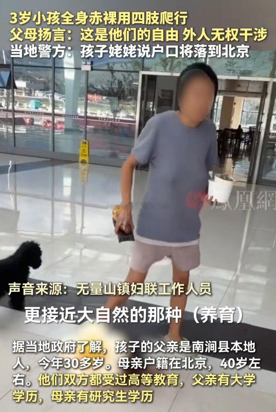 我真有点受不了,什么叫崇尚自然的,什么叫接近大自然的养育方式?什么是大众育儿观?野人小孩事件跟育儿观没有关系,只有把狗当人养的,没有把人把狗养的。家属这么喜欢大自然,父母怎么不在地上爬?
