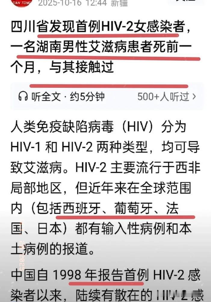 近几日让人毛骨悚然的新闻:2022年一名艾滋晚期男性从湖南跑到四川约见一女性,导致这名女性成为四川首例HIV-2感染者。 据流行病学调查,该男性2017年确诊艾滋病,病了5年,明知道自己身体这么差,竟然跑这么远约见女性,真是太自私了。 据流调,这名女性有8名性接触者,除了已故男性,其他7名也有可能被感染,这名男性约见女性,不仅毁了自己,还差点引发公共卫生事件。 提醒大家一定要保护好自己,也要保护好他人,对待私人生活一定要负责任。