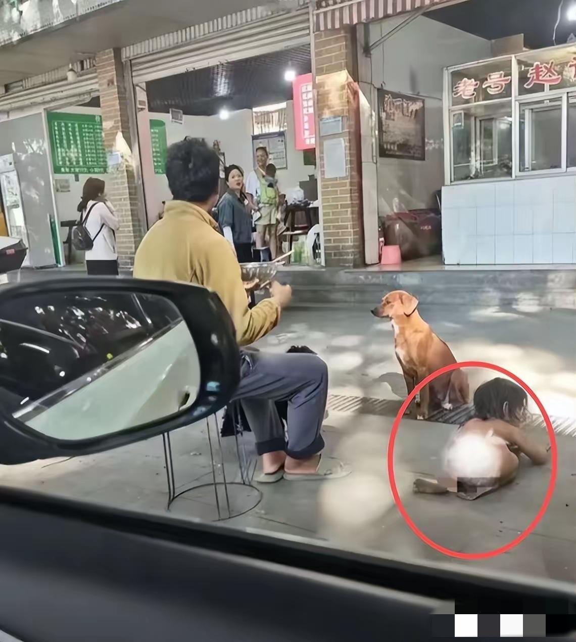 这就是“野人孩子”的妈妈,研究生毕业,北京户口,眼神中透着一股生人勿近的警惕。 我怎么看,她都不行研究生毕业的任。 看她的穿戴,看她的行为,哪里有一个高知识人的模样呀。 一个长长的灰色体恤衫,一条藕色的短裤。 人很瘦,看看那胳膊和小腿,瘦的不说皮包骨头,也差不多。 透过汗衫,发现这个妈妈没有穿内衣。 以一个已婚哺乳女性的眼光看,这个妈妈不止生了一个孩子。 头发很短,佝偻着背。 妥妥一个农村人的形象。 右手一个玩具,左手一个好像纸碗的样子。 这个妈妈的脚下,趴着一个什么衣服都没有穿的孩子。 大约有三至四岁的样。 孩子头发很长,两只小手趴在地上,面朝地,看不出模样。 还有一只黑色的长毛狗,成了一道讽刺的风景。 这个照片,是网友无意中拍到的。 近日,有网友在雅安高速服务区,拍到一个全身赤裸的孩子。 该网友发文称,“孩子类犬,吃饭、爬行……”,像个“野人孩子”。 网友的现场视频,我看了好几遍。 视频中,(图二)一个全身赤裸、瘦弱黝黑的孩子蹲伏在台阶上啃咬食物。 孩子的旁边还有一位抱着另一个孩子的大人。 抱着的孩子比较小。 另一份视频,孩子用四肢在地上爬行奔跑,然后趴在地上,和狗狗一起趴在地上。 看了这些事情, 心里发寒。 这是一个很小的孩子,居然活的不如一条狗。 据知情人透露,这个孩子爸爸妈妈都是有学历之人。 爸爸大学毕业,妈妈研究生毕业,还是北京户口。 拍视频的网友心善良,他报警了。 听说,这个孩子曾经也有人报警,后来不了了之。 只希望这一次报警 能够帮帮这个孩子。 冬天到了,孩子不穿衣服,那不得冻生病吗?[祈祷][祈祷][祈祷][祈祷] 可怜的孩子,希望有人能够帮助到他。