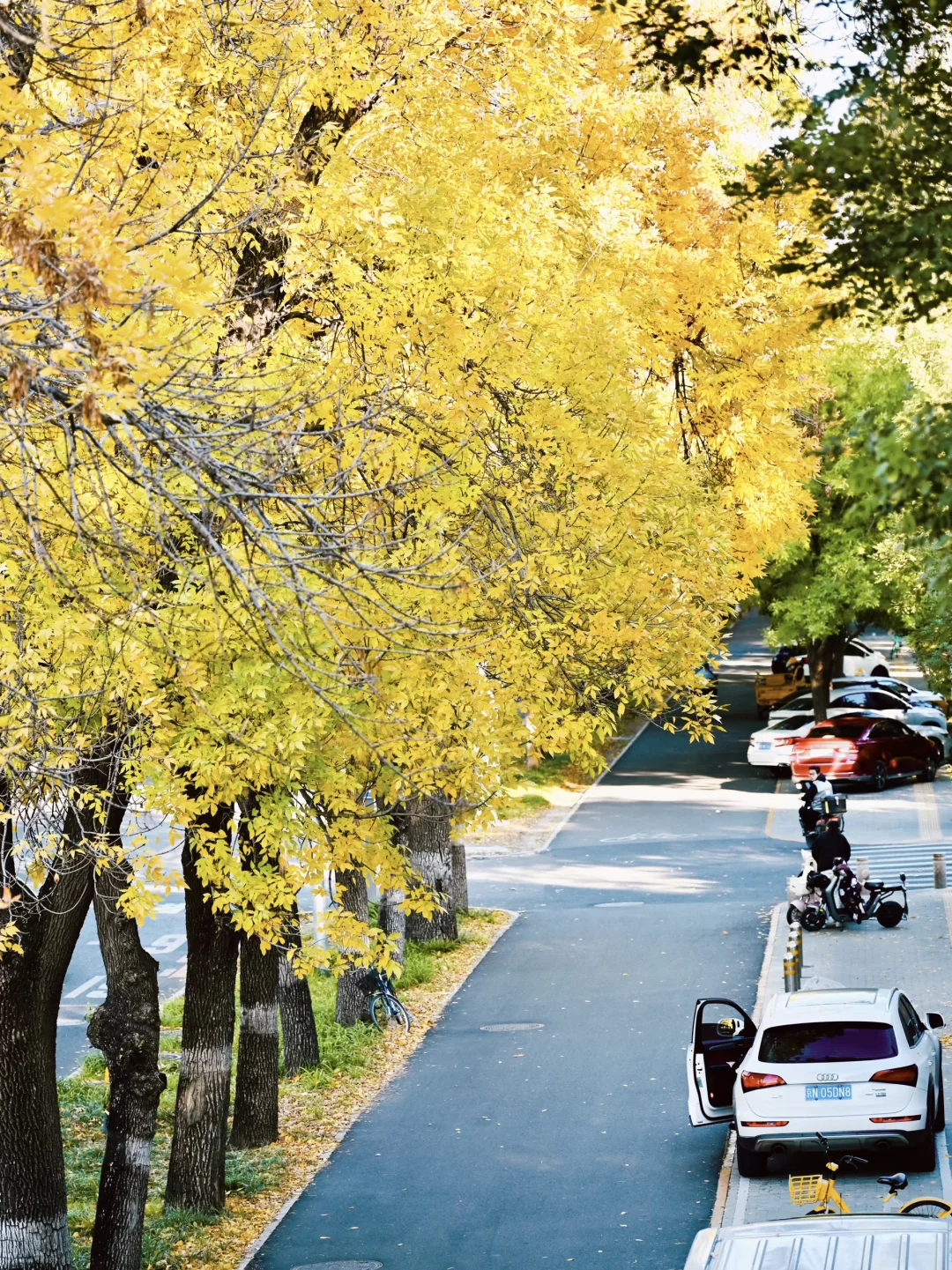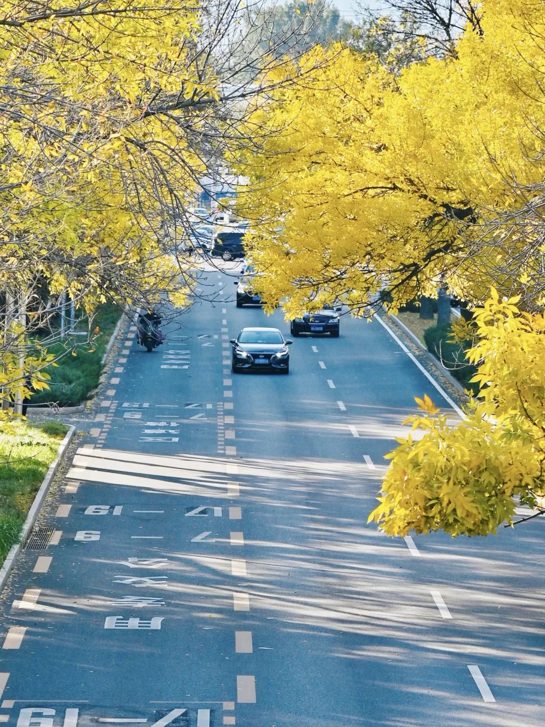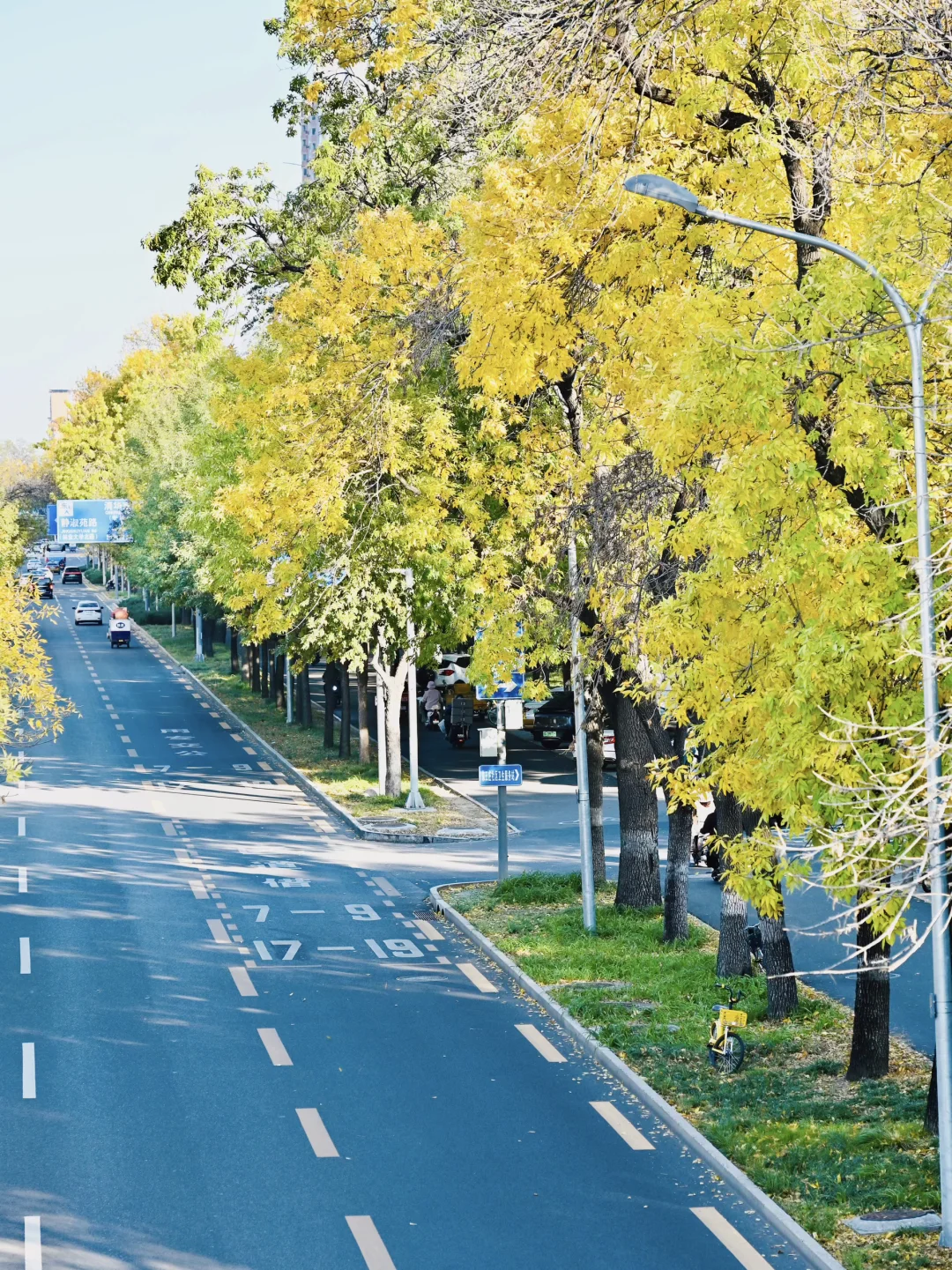 两边满满的白蜡树,给道路覆上金黄拱门🍂 没有熙攘的人流,可以安安静静的赏秋 北京秋天的美,就在身边❤️ 📍清华东路(西段) 🚇15号线or昌平线-六道口站 🍂白蜡集中在林业大学南门处,照片主要在林业大学南门天桥上拍 📸2025.10.19