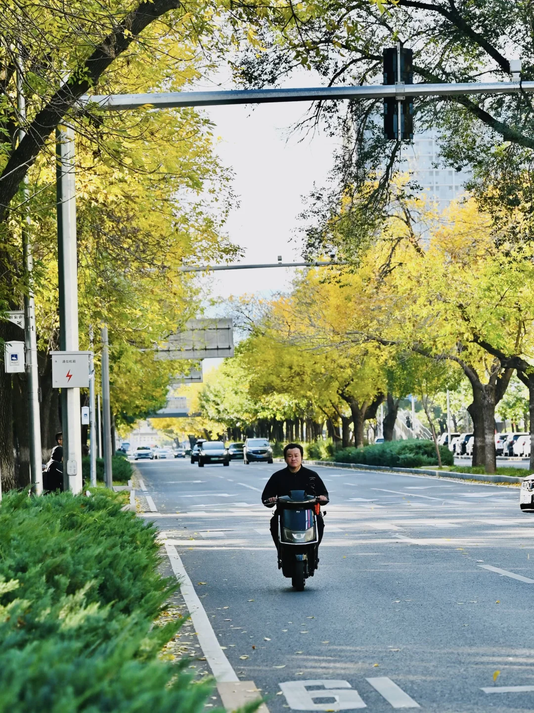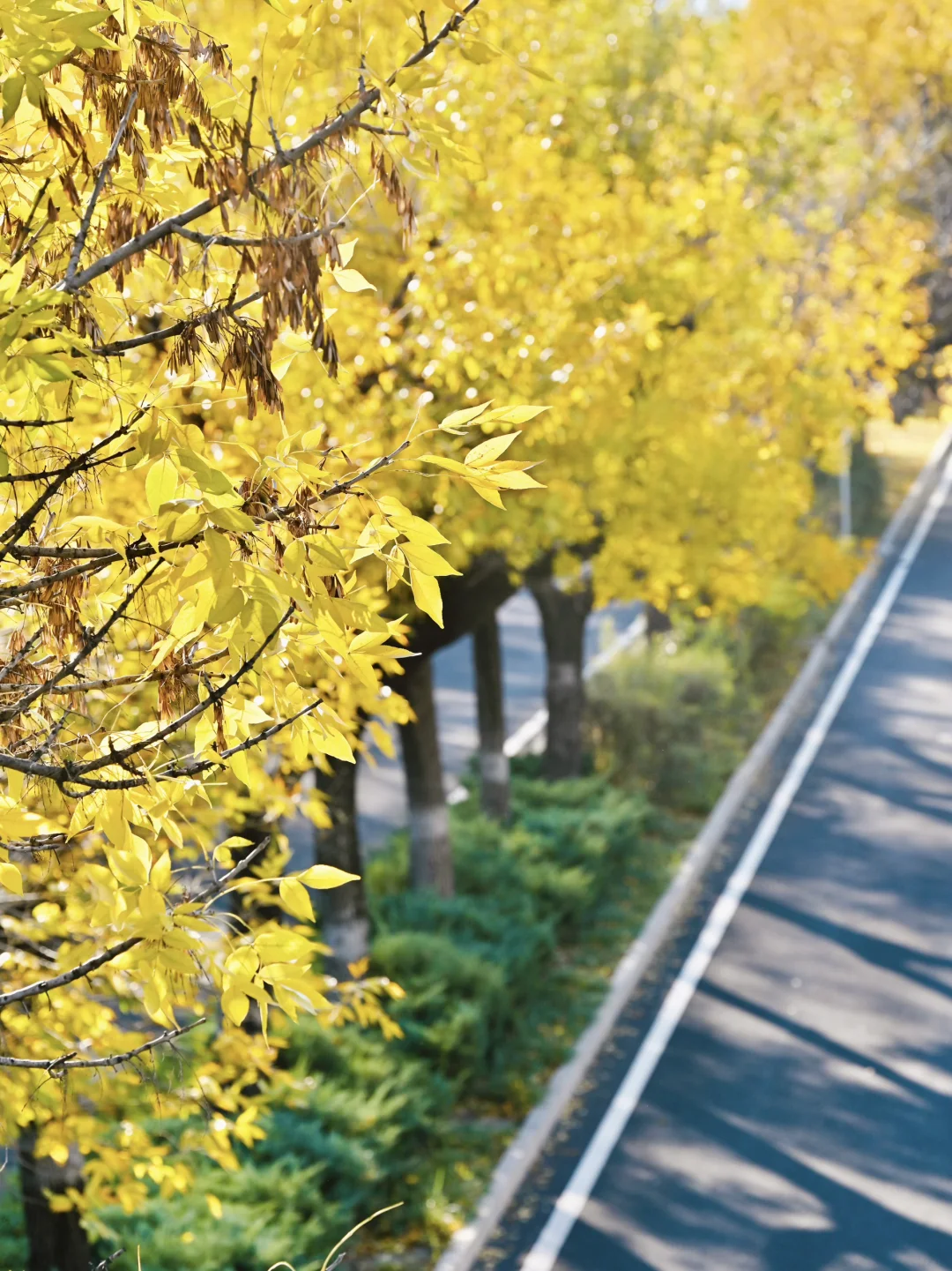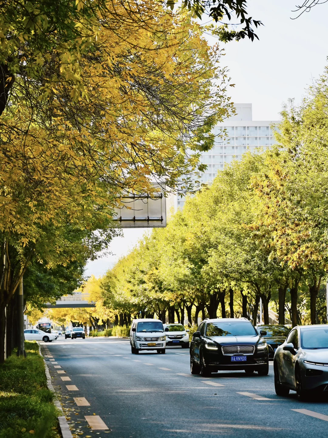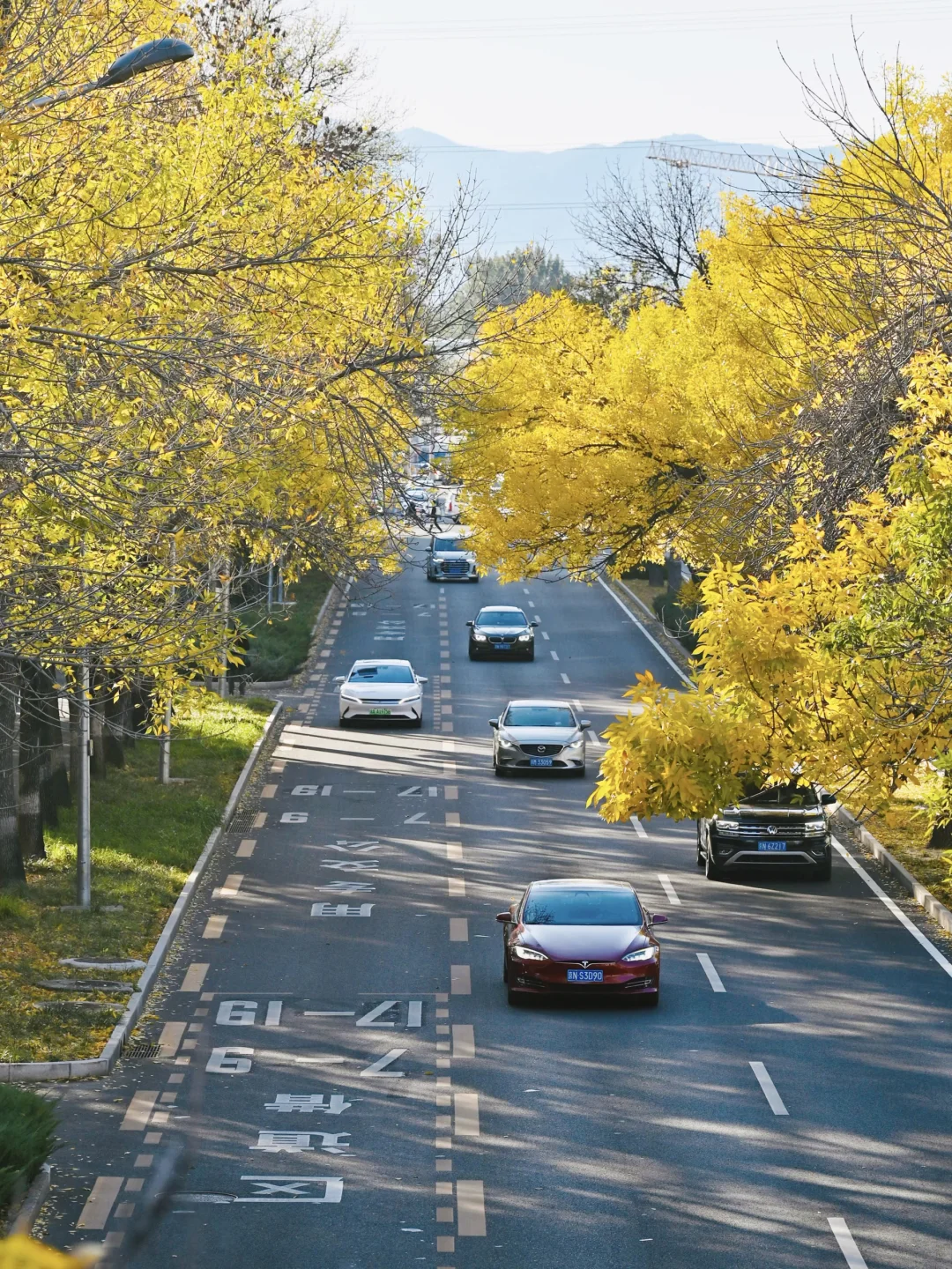 两边满满的白蜡树,给道路覆上金黄拱门🍂 没有熙攘的人流,可以安安静静的赏秋 北京秋天的美,就在身边❤️ 📍清华东路(西段) 🚇15号线or昌平线-六道口站 🍂白蜡集中在林业大学南门处,照片主要在林业大学南门天桥上拍 📸2025.10.19