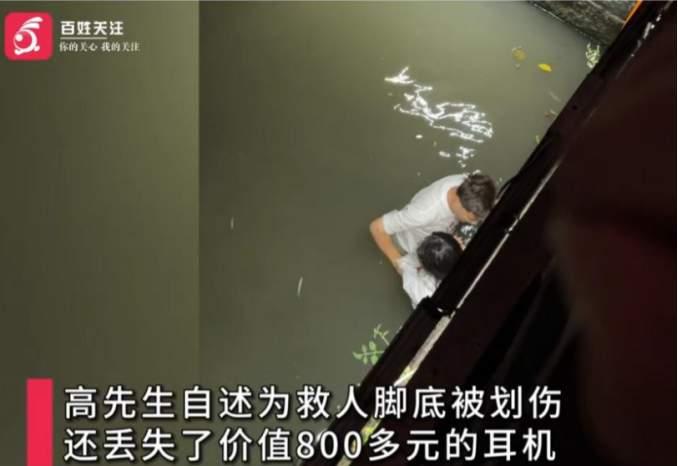 浙江杭州,男子散步时突然听到救命声,一看才发现有女子落水,男子不顾自身安危跳水救