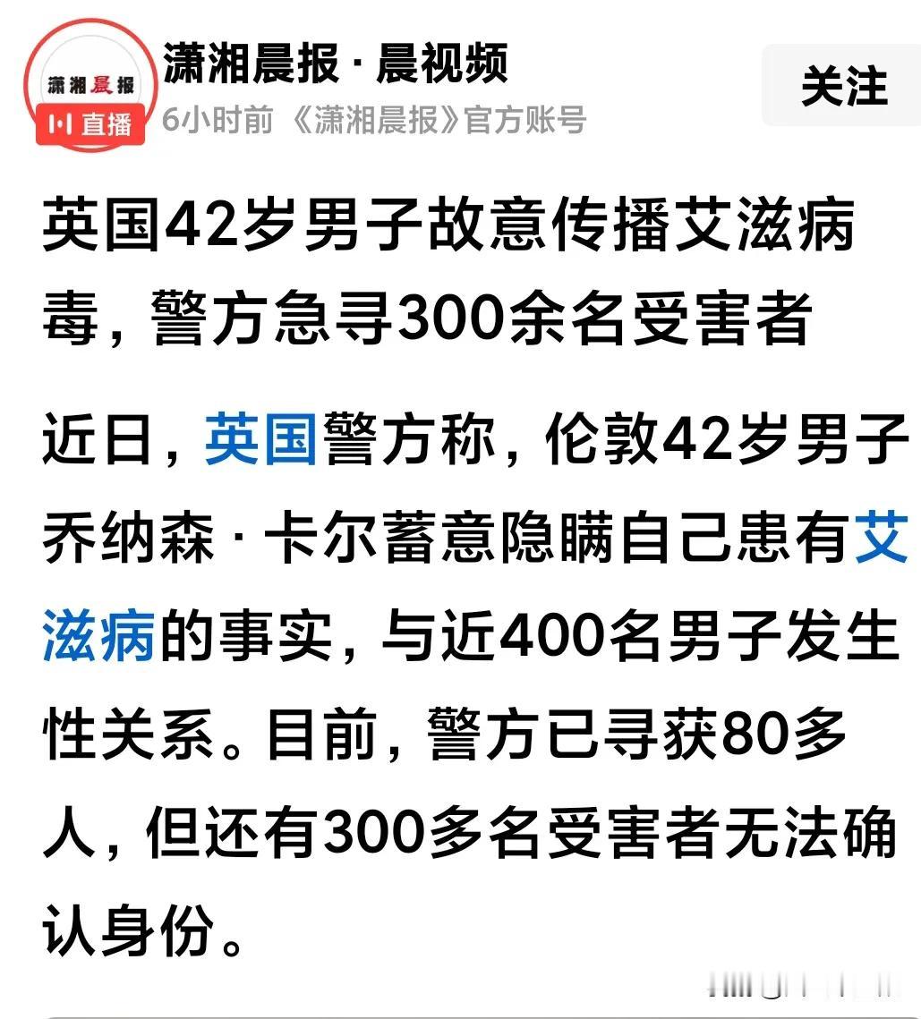 英国一男子明知自己身患艾滋病,却故意与400多人发生关系,男女老少都有,更可怕的