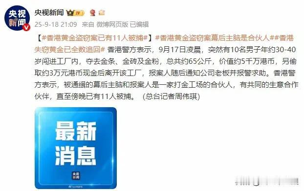 港片既视感,这年头还能这么抢劫金店,果然凌晨犯案,傍晚就破案,幕后主使是同一家金厂的合伙人,抓了11个。