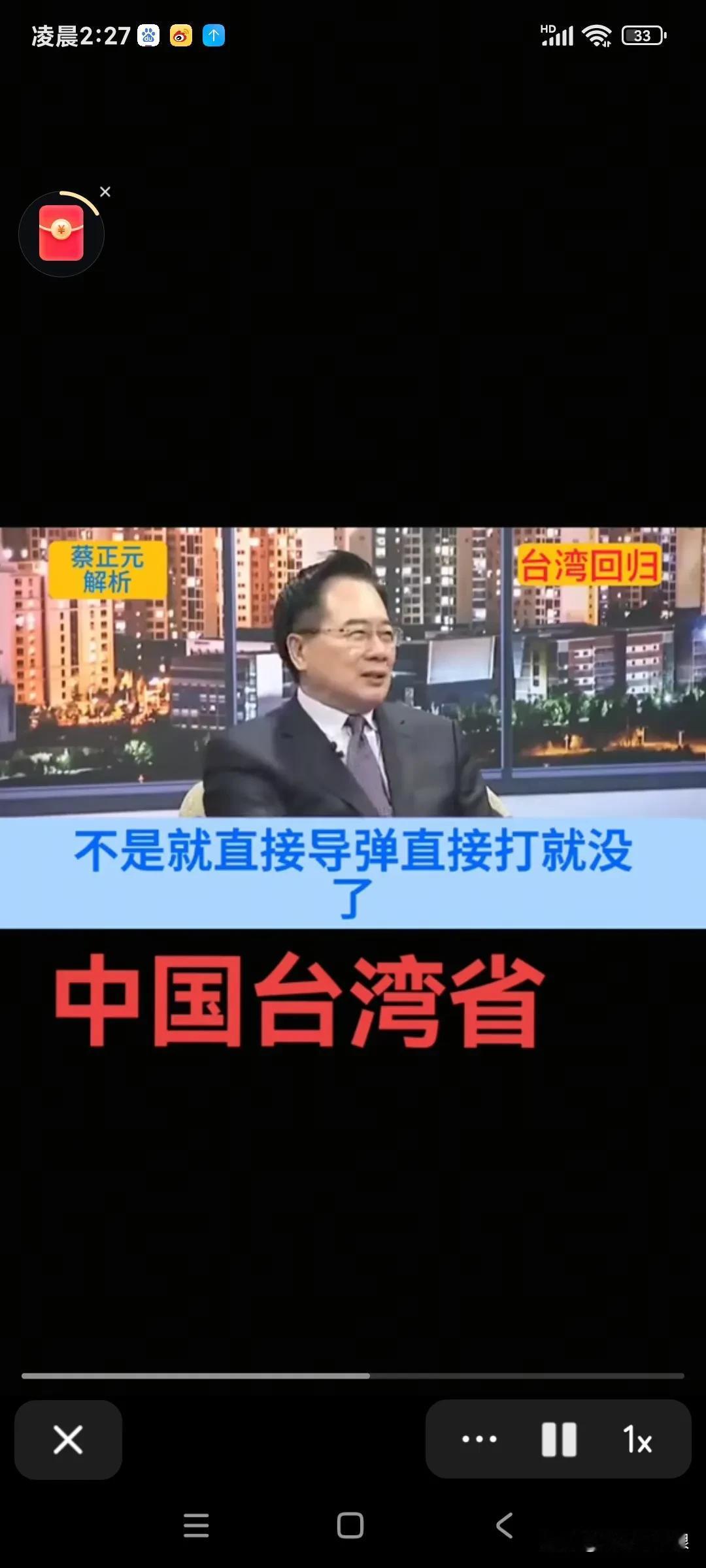 蔡正元说【和平不统一,统一不和平】,中国想要统一,和平手段是不可能完成统一的,蒋经国死后,已经没有势力能和北京谈判了。 但是想要通过和平的方式统一不可能,台独很顽固,只有通过斩首行动,打掉那些台独头子,就没问题了。 像各大台独的家在哪里,早就给你标的明明白白,赖清德的行程都知道,台湾的妈妈都不让孩子参军,军队招不到人,台独都让儿女跑路了,他们心里可真清楚了。 他拿乌克兰举例,乌克兰当初为了打击俄罗斯,百分之九十八的民意说要打,老奶奶举枪捍卫领土,可是现在几年过去,已经完全没有这种声音了。 乌克兰丢了百分之二十的土地,百分之二十五的人口百分之七十的领土,台湾人却忘了乌克兰的教训。 所以民意没有用,只有大鲸鱼的意思才最重要。 台湾别老想着打巷战,雷达站,没有用,上来就给你炸了。