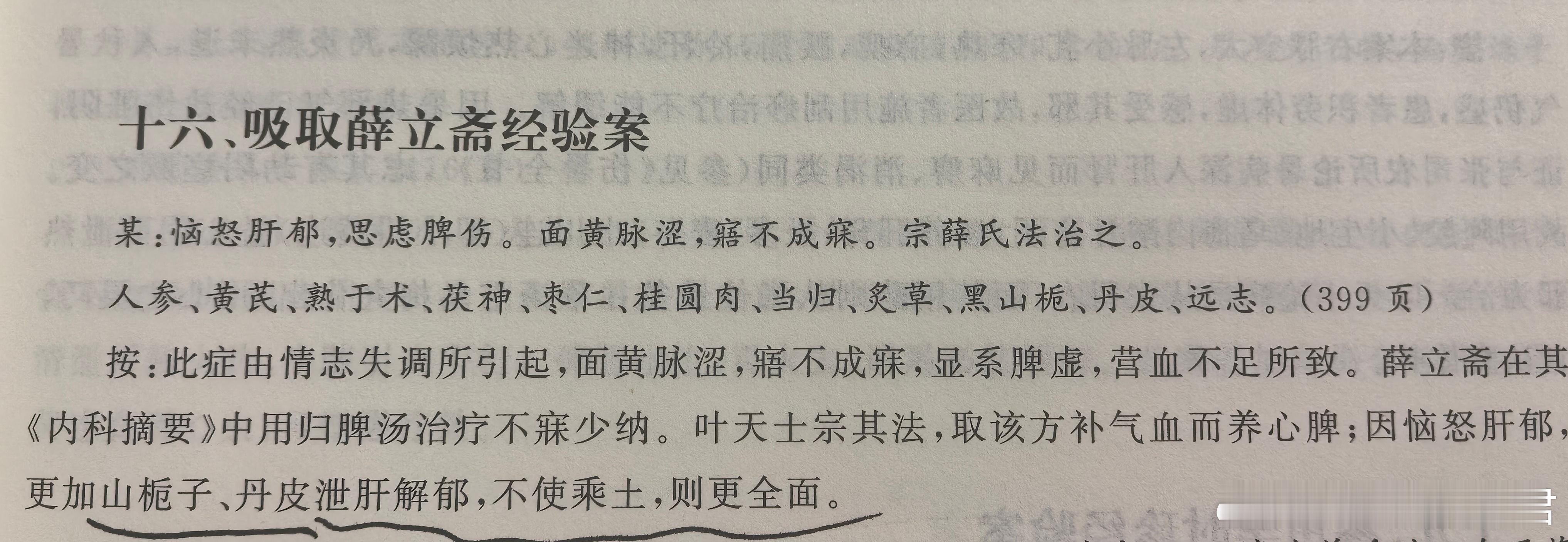 这可不是开玩笑哦[允悲]看这则叶案,寥寥二三十个字,为我们勾勒了一位“生气家”,面色萎黄,脉涩,睡不着、吃不下,用薛立斋法。薛治失眠擅用归脾汤,叶天士加了丹皮、栀子,泄肝解郁。
