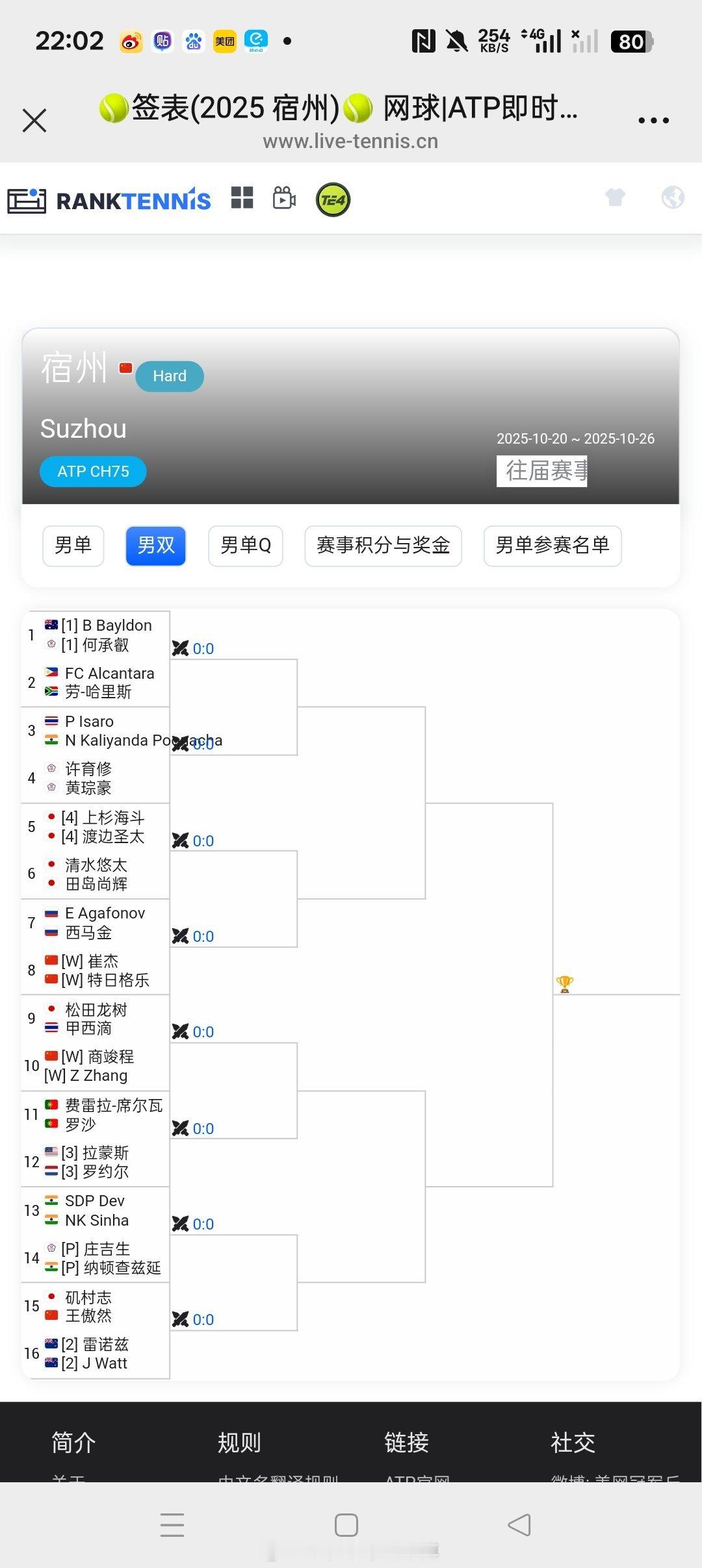 【🇨🇳苏州挑战赛】男单签表🇨🇳周意vs🇯🇵西冈良人🇨🇳崔杰vs