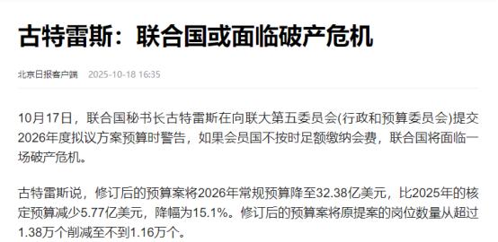 10月18日,联合国秘书长古特雷斯在提交2026年预算草案时当众宣布:如果会员国