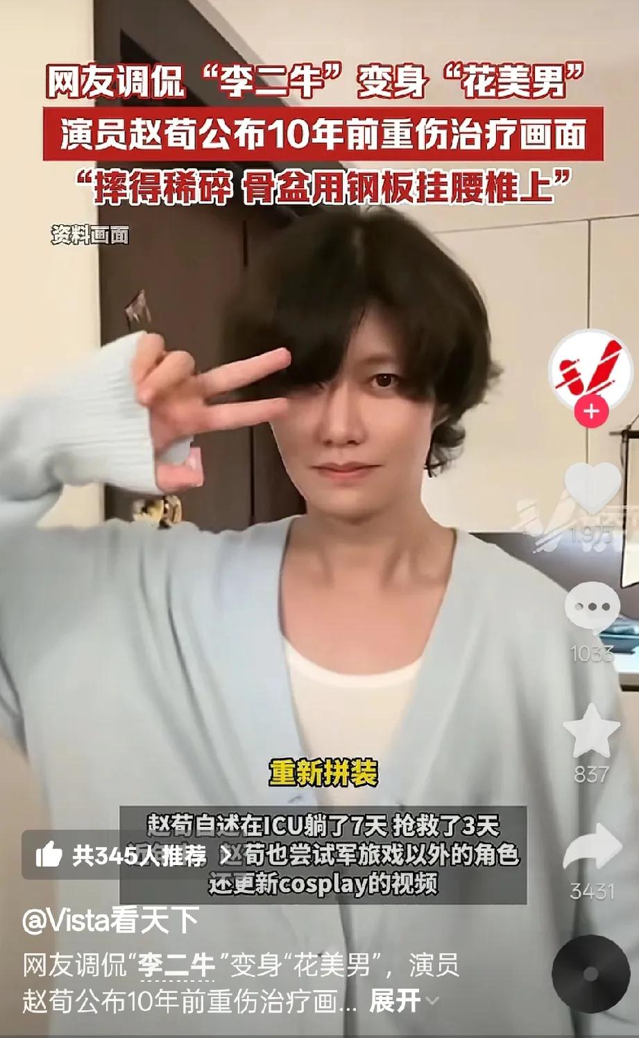 这几张照,“爷们”、“花美男”,都是同一个人!这就是演员赵荀!这变化,这反差拉到最满!10年的变化,惊人!而这,当你看了他的故事后,就会理解他这一路挺过来的心酸和不容易。 10年前,赵荀因为拍戏时威亚断裂了,导致他高空坠落摔成了重伤,赵荀回忆说他当时在icu躺了7天,被抢救了3天!真的是太惨了。 现在赵荀的抖音号有197.9万粉丝,将近两百万粉丝,也挺火的!他的很多视频里的形象是“甜美”形象,花美男,确实有那种小鲜肉霸总的感觉,转型挺成功的!和以前的“硬汉”形象反差挺大的。 我看到有一个网友的留言,挺赞同的!他说,盆骨粉碎性骨折,骨盆内出血,颅内出血,手臂骨折外翻,从三楼高威亚摔下,能活着都是造化,一度大小便都不能自理,他能康复成现在这样,能正常生活已经是万幸了,能走出另一条路,并且能够积极的活得很好,是他的韧性和能力,所以不要去诋毁赵荀,经历这些我只有佩服![赞][作揖]大家看完有什么感受呢?
