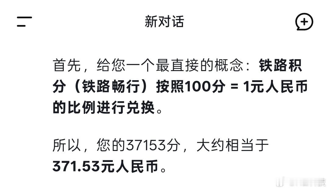 100分=1元,我的37153乘车积分等于371.53元[柯基]下次用掉,大家有多少积分?12306新增积分兑换座位升席功能