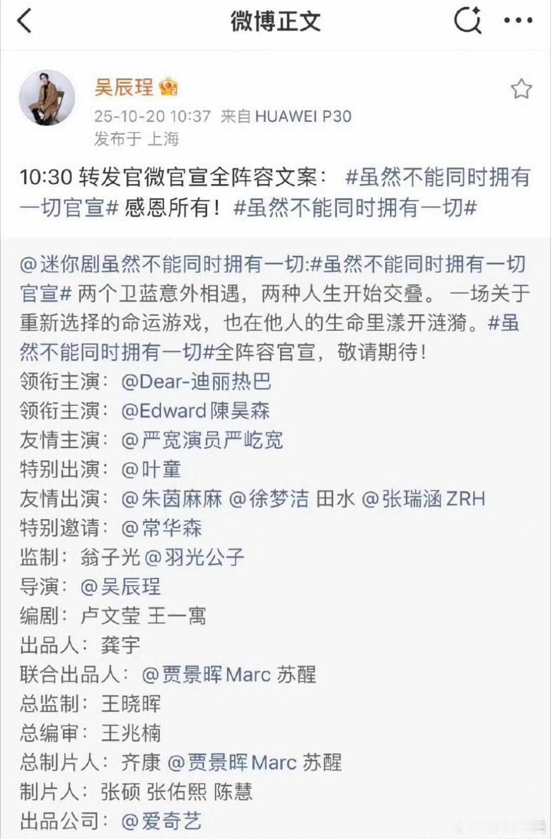 迪丽热巴新剧导演演我周一上班哈哈哈下次直接给导儿转发文案就好了(不带说明的那种[