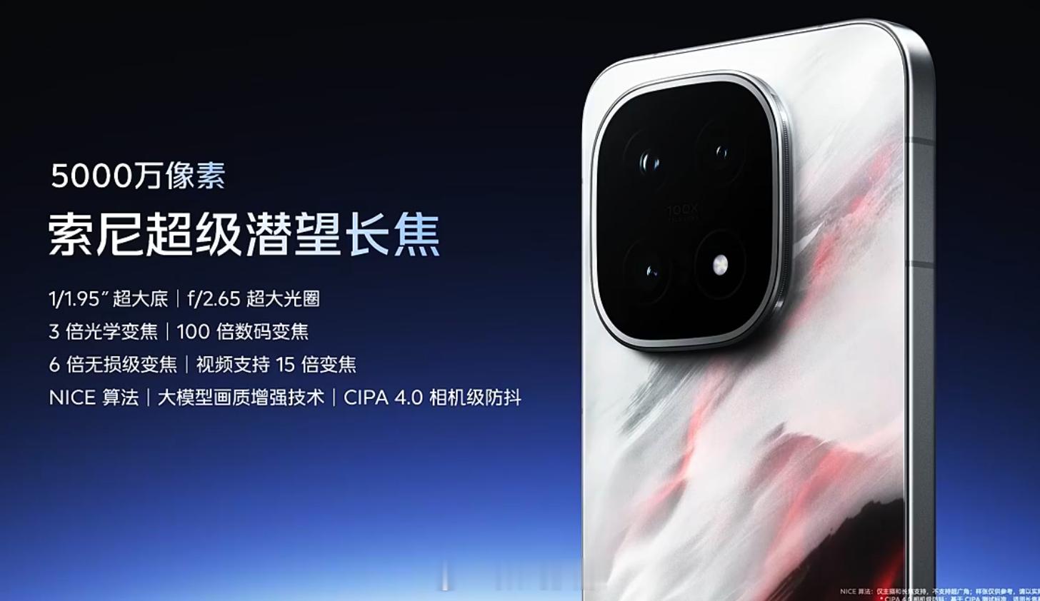 前置3200万,后置3颗5000万像素镜头,包括一颗潜望长焦,最高100x数字变焦