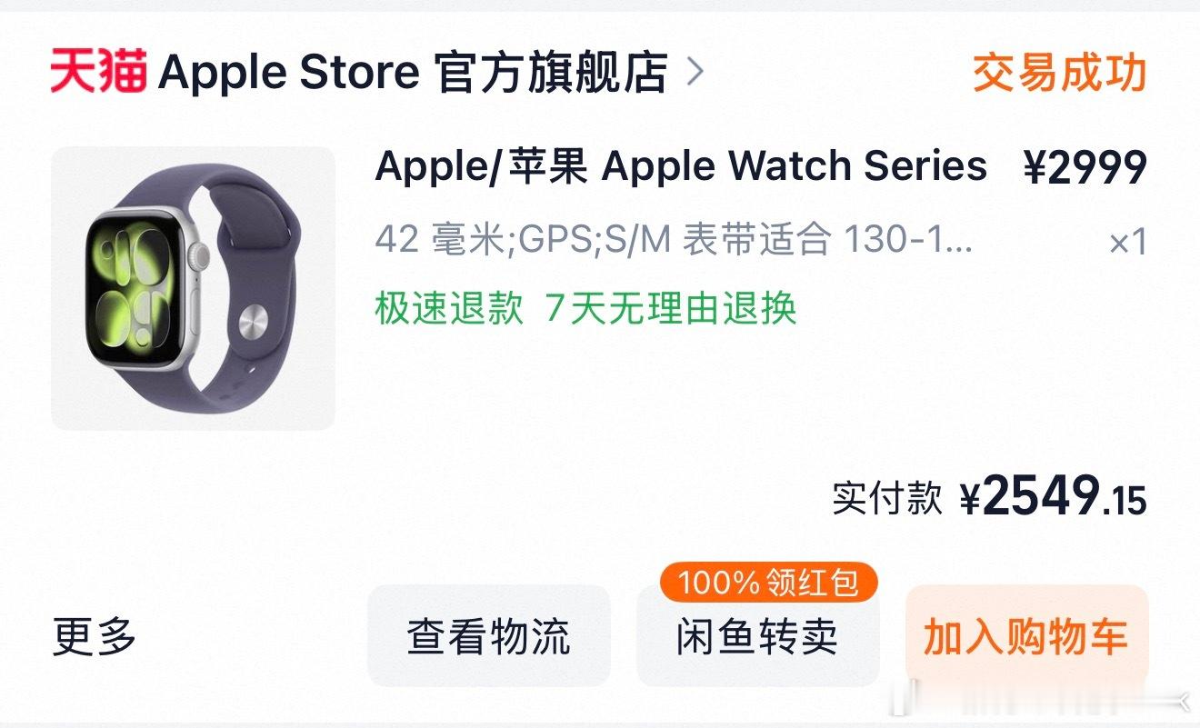 双十一 没便宜我觉得还是有一些优惠,感觉还挺便宜的,买了苹果手表😁