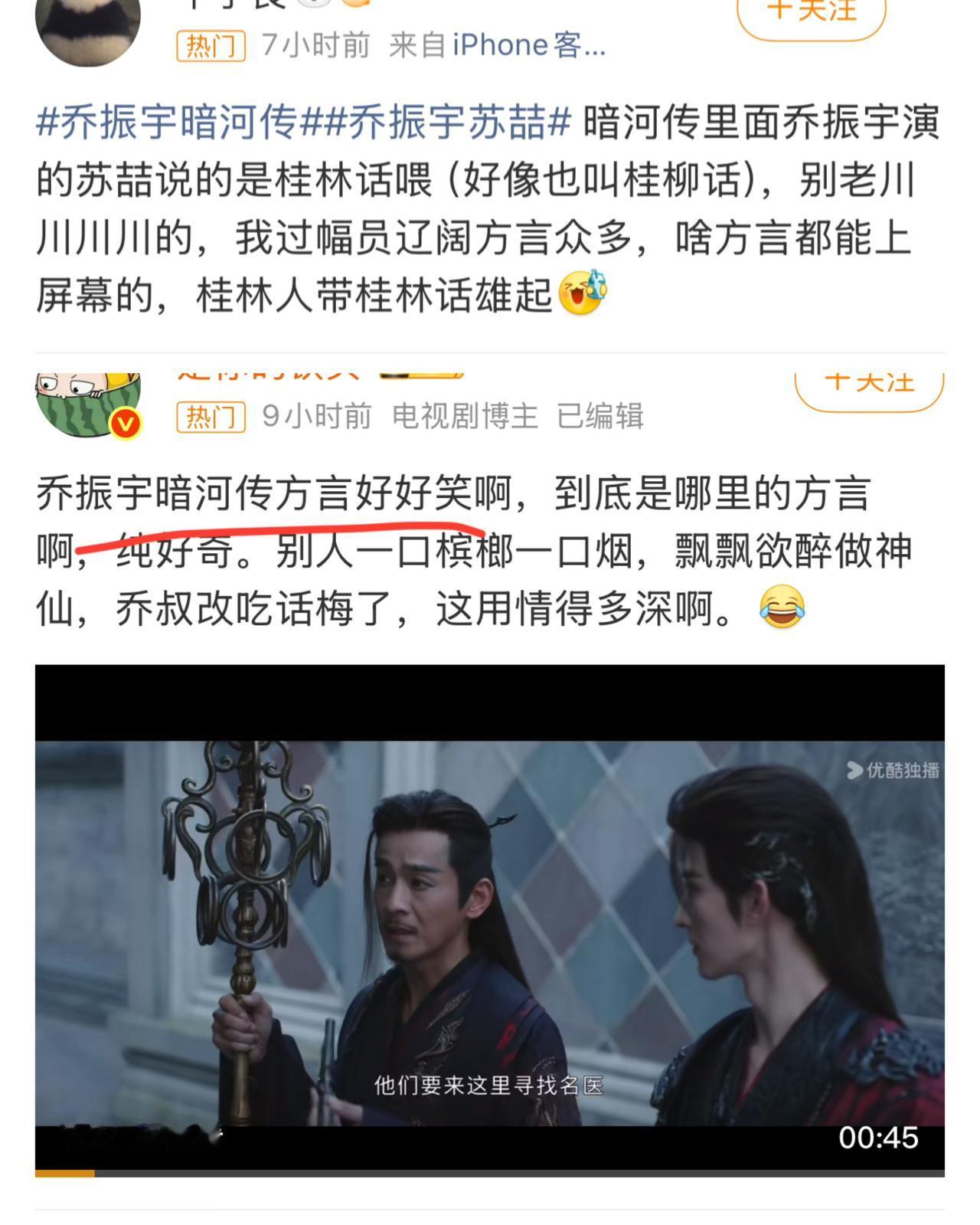 《暗河传》里苏喆说的方言挺有趣的。 有人好奇,这到底是湖南话还是四川话? 其实都不是。 答案是:苏喆说的是桂柳话。 因为扮演苏喆的演员乔振宇就是桂林人,所以在剧中他说的就是家乡的方言桂林话(桂柳话)。 只是没想到,乔振宇都演老人了。 想当年, 他在《烽火佳人》里饰演的周霆琛 是多么帅气,多么迷人。