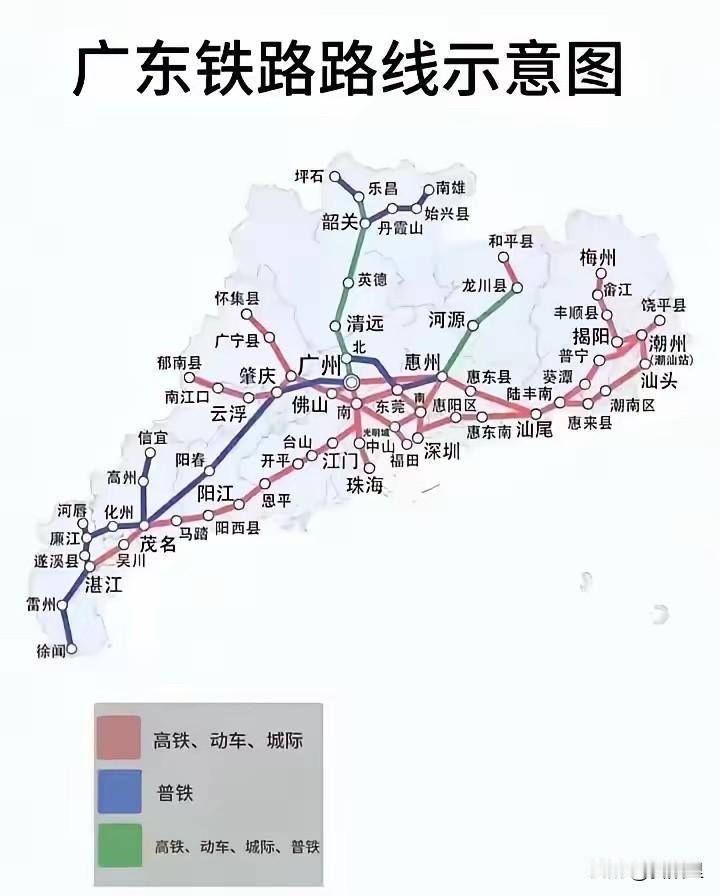 看到这张图,才知道广州在铁路方面的无比强大,处于交通末梢的深圳,怕是永远也达不到
