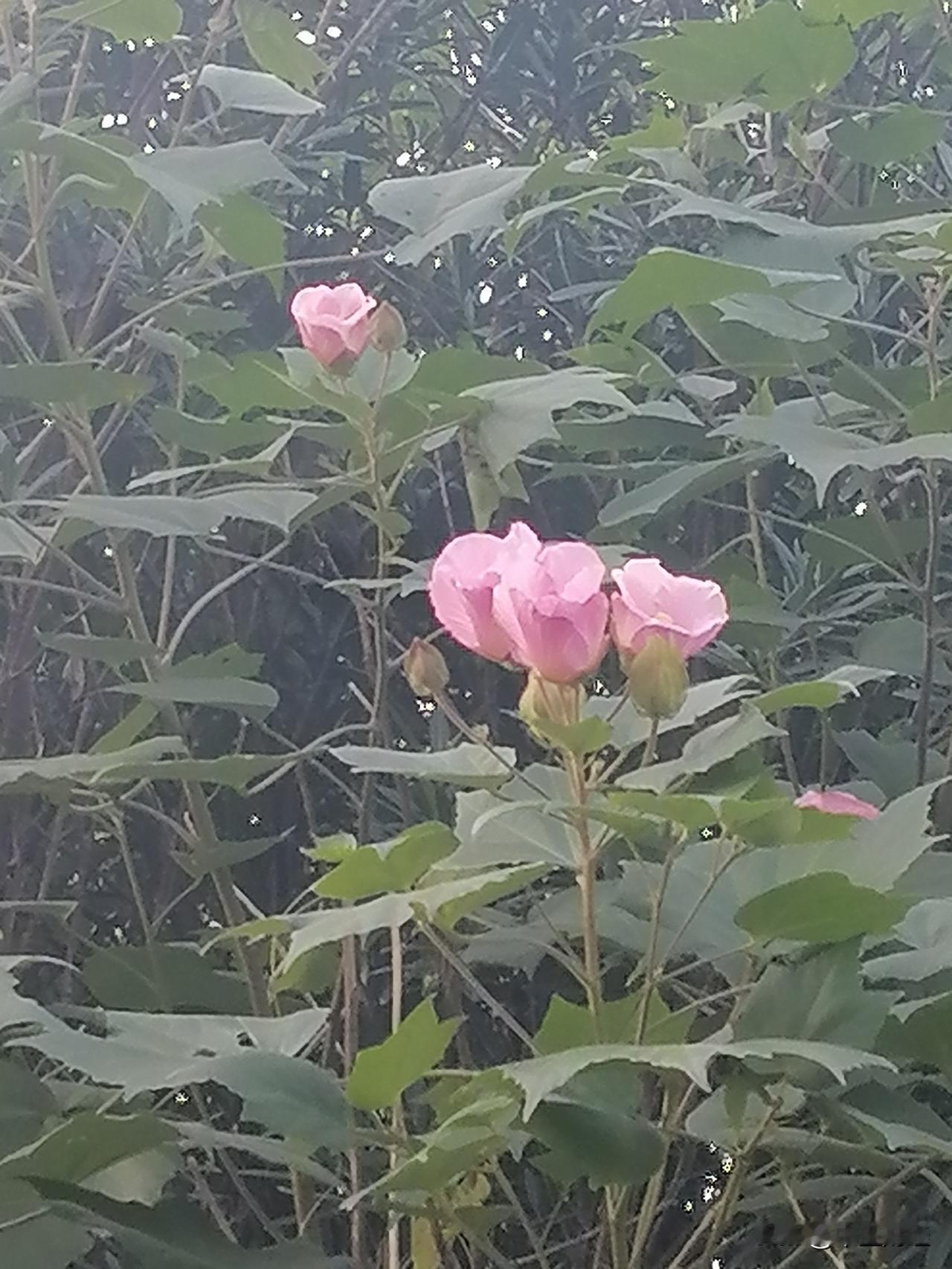 惊讶!走着走着,看到几朵鲜艳的花朵,这已经马上霜降了,寒冷的北方郑州,此时花开,这种花到底是什么花呢? 查了一下,原来是成都的市花,木芙蓉是原产中国的传统名花,栽培历史超千年。其"醉芙蓉"特性(花色晨白午粉暮深红)源于花青素浓度变化,在霜降时节仍繁花似锦,故得"拒霜"美名。 从苏轼"溪边野芙蓉,花水相媚好"到成都"蓉城"雅称,木芙蓉以独特的花色变幻和坚韧品格,成为融自然奇观与人文精神于一体的秋日佳卉。 真可谓:不共春花斗艳妆,偏迎霜刃试红裳——木芙蓉!