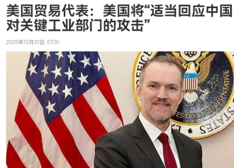 美国贸易代表撂话,会对我们的反制进行回击!10月21日,根据外媒报道,美国贸易代表格里尔发表声明称,华盛顿将适当回应中国为占据主导地位而针对关键工业部门的攻击。中国恐吓企图不会阻止美国重建其造船基地,我们会对中国为占据主导地位,而针对关键工业部门的攻击做出适当回应。