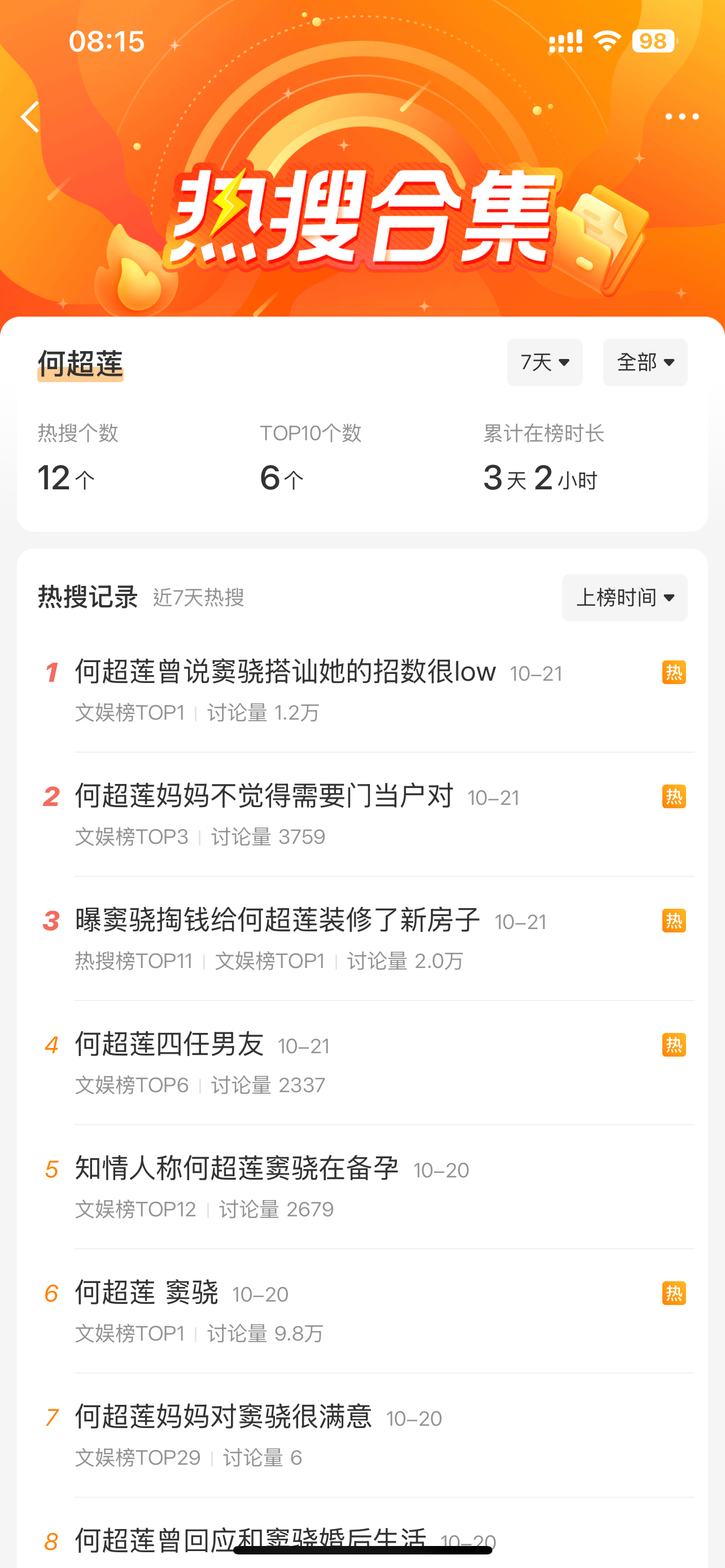 向太引起的窦骁何超莲离婚风波,来看看窦骁何超莲最近的热搜![吃瓜][吃瓜][吃瓜]向太多平台删帖何超莲曾说窦骁搭讪她的招数很low