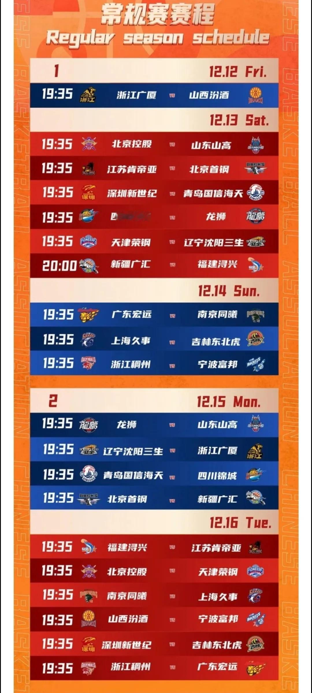 CBA新赛季赛程出炉,揭幕战是卫冕冠军广厦打山西,时间乃12月12日,这是请大师