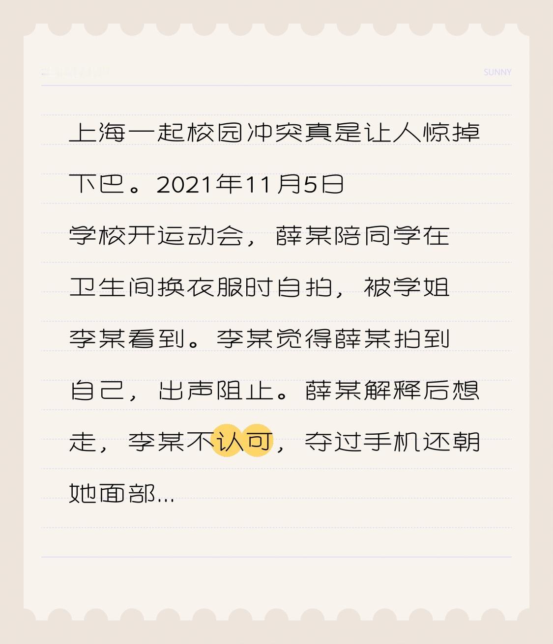 上海一起校园冲突真是让人惊掉下巴。2021年11月5日学校开运动会,薛某陪同学在